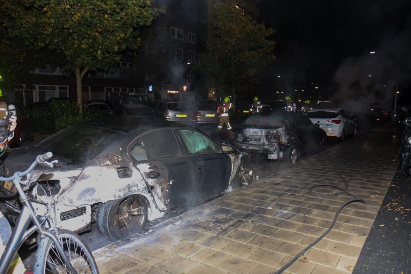 Als de brandweer ter plaatse komt blijken er meerdere auto’s in brand te staan. Omdat ze geparkeerd staan langs woning maakt de brandweer middelbrand.