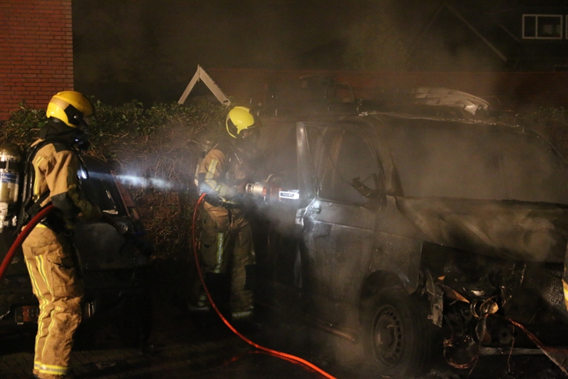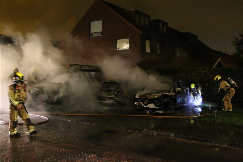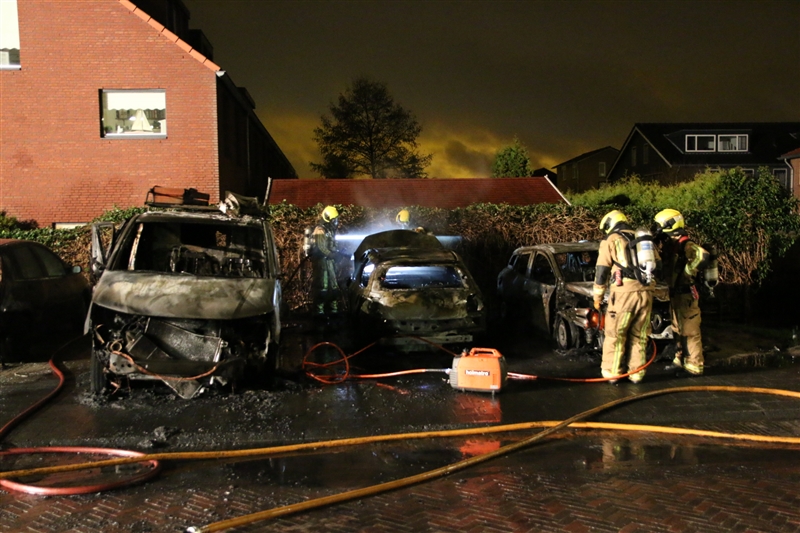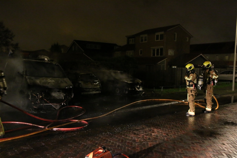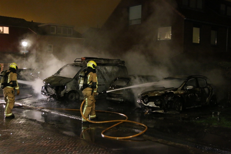 Den Haag – In de nacht van vrijdag op zaterdag zijn vier auto’s zwaar beschadigd geraakt bij een brand. Dit gebeurde op de Elzenbroeklaan in Den Haag. Toen de brandweer arriveerde stonden drie auto’s volledig in brand. Een andere geparkeerde auto ging door de flinke vuurzee ook in brand. De brandweer had enige tijd nodig om het vuur te blussen. Door de flinke rook en de roet delen die vrij kwamen bij de brand raakte de bluspakken van de brandweer flink vervuild. De Grootschalige Ontsmettings-eenheid van de brandweer kwam ter plaatse om de brandweermannen schoon te spoelen. Ook kregen ze vervangende kleding. In verband met mogelijk brandstichting is de politie een onderzoek gestart.