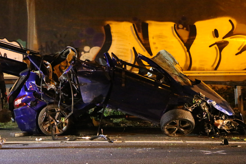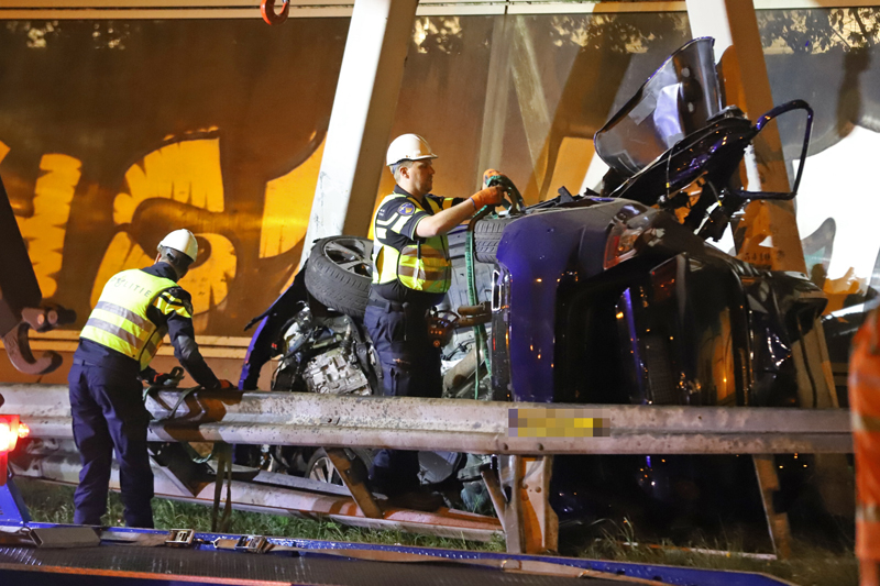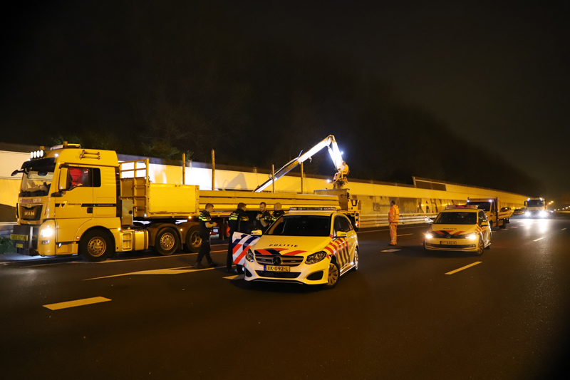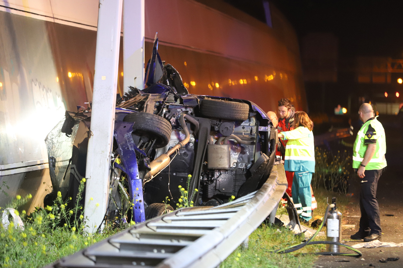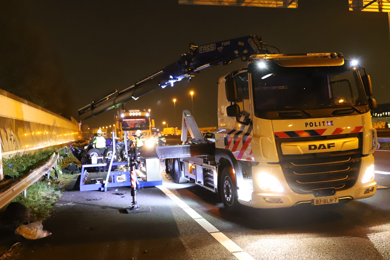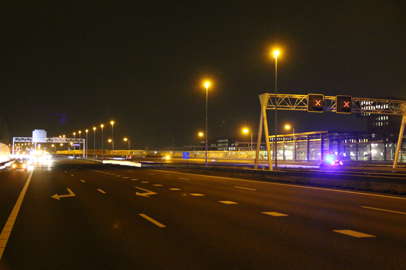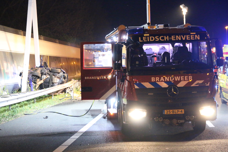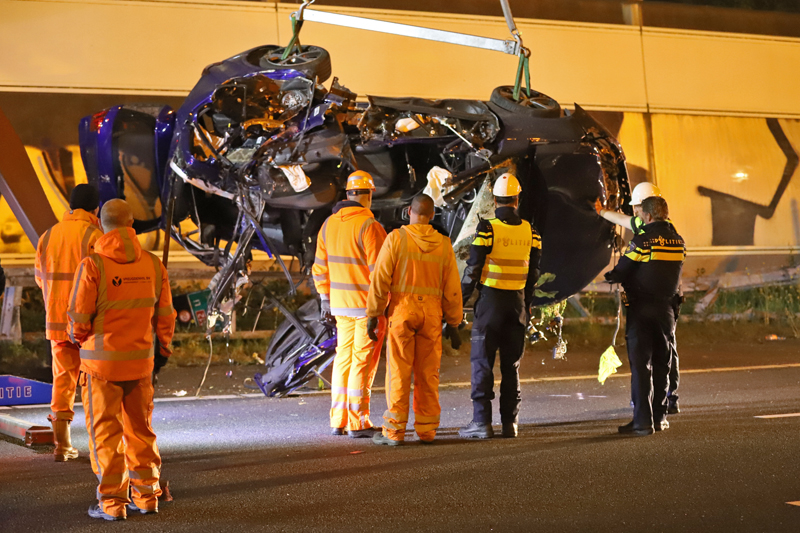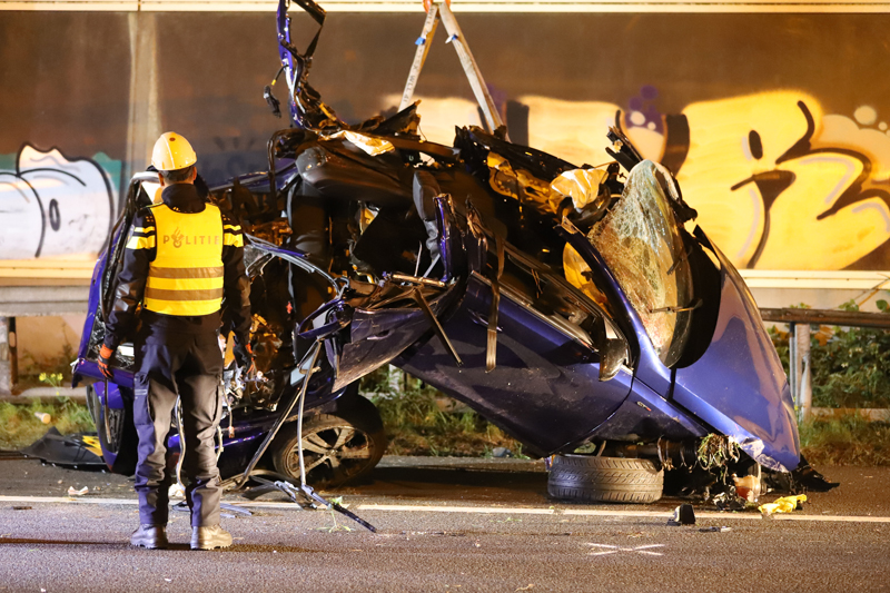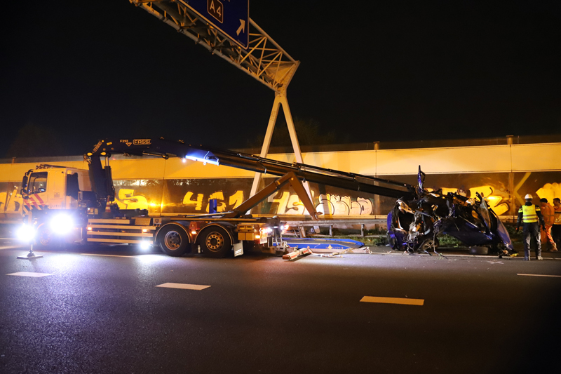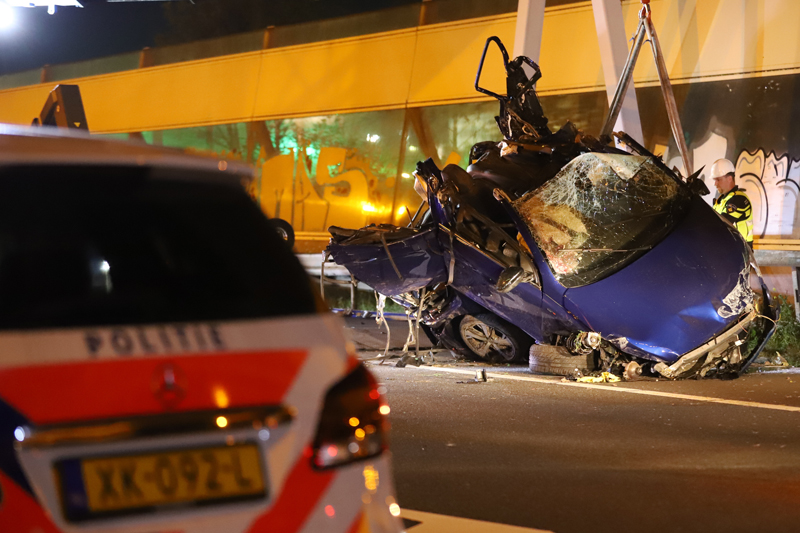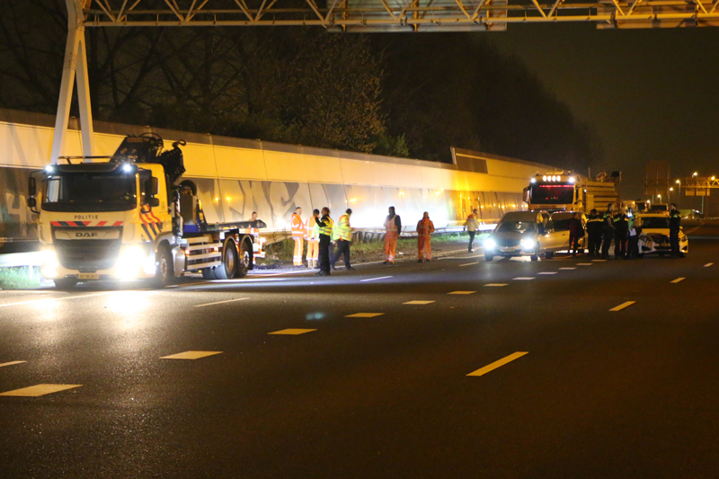 Den Haag – Op de A12 bij Den Haag heeft in de nacht van dinsdag op woensdag een bizar ongeval plaats gevonden. Ter hoogte van station Ypenburg knalde een auto op zijn zij zich vast in een verkeersportaal.