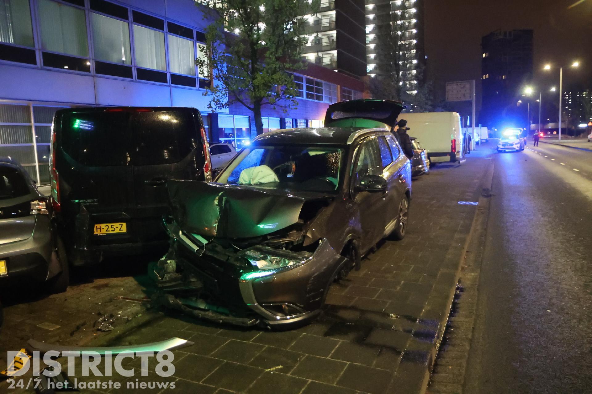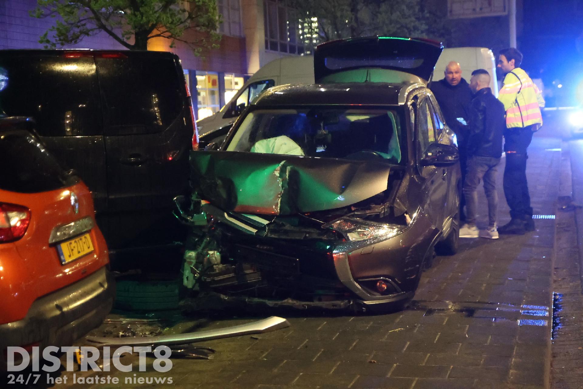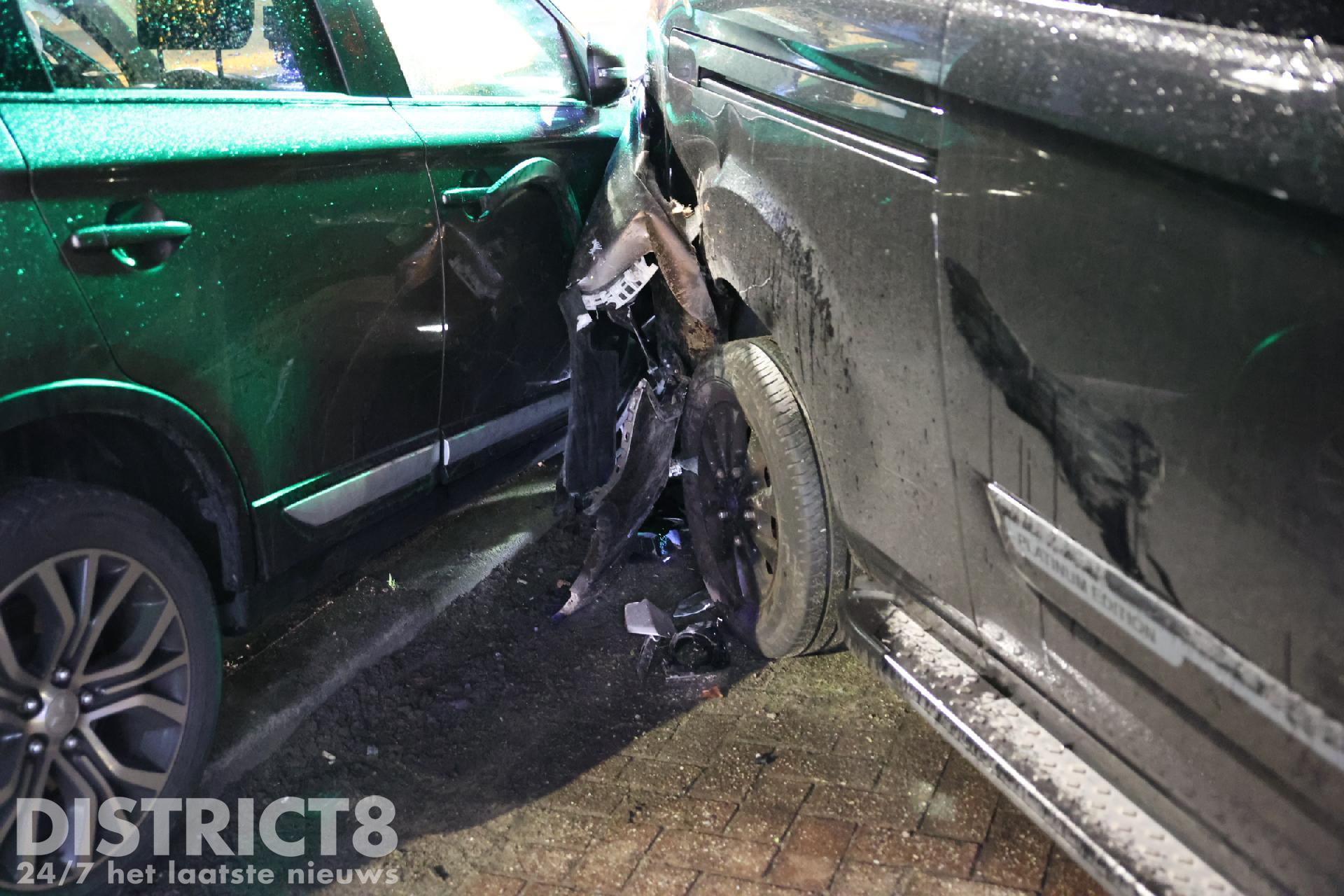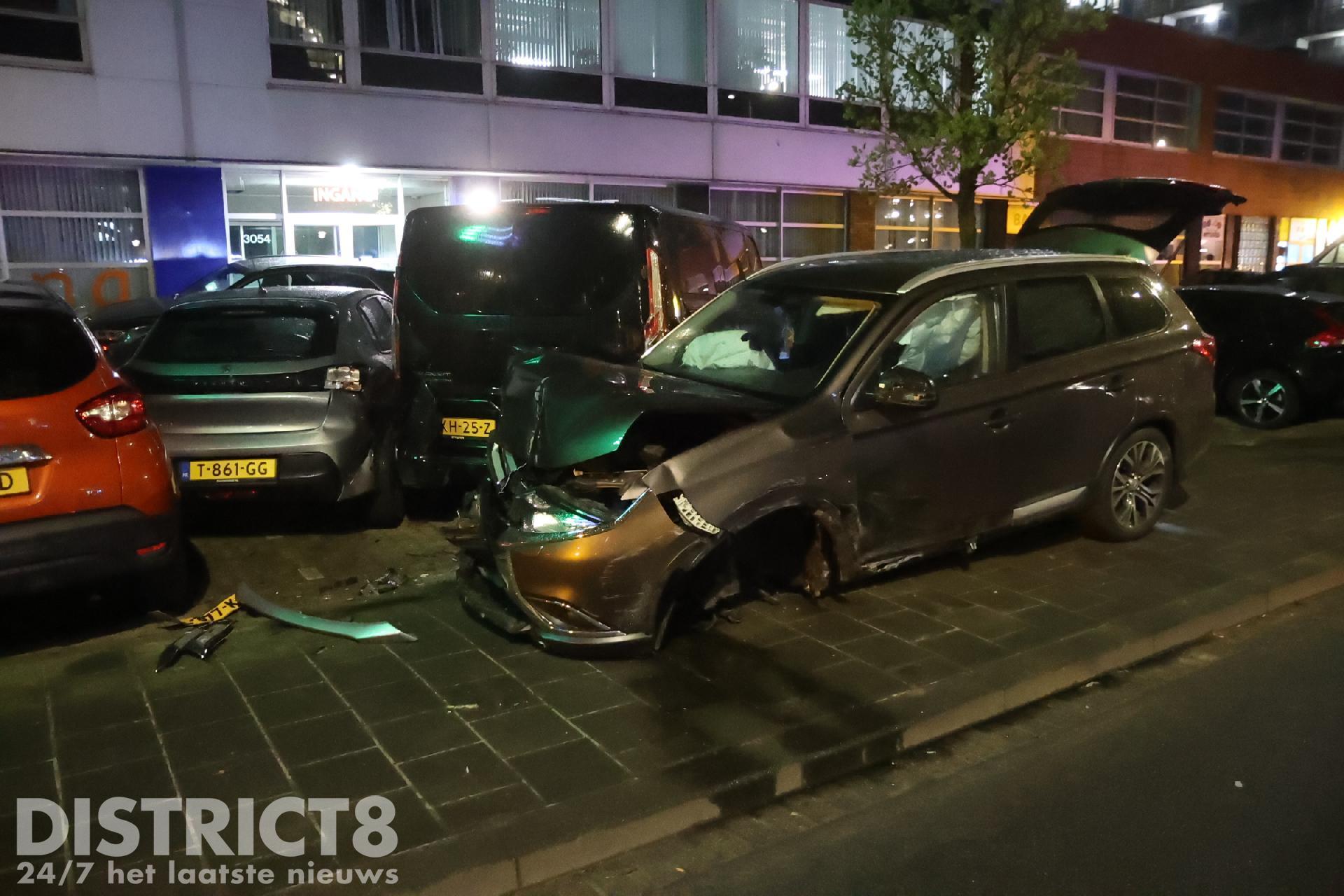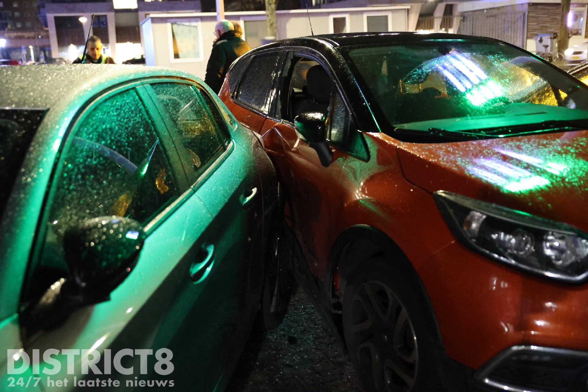 Eén van de twee geparkeerde voertuigen schoot door naar een derde geparkeerd voertuig, waardoor in totaal drie geparkeerde voertuigen schade opliepen. De airbags van de personenauto die de macht over het stuur verloor, kwamen vrij. Vier inzittenden besloten volgens omstanders het hazenpad te kiezen. Eén inzittende bleef echter ter plaatse en werd meegenomen naar het politiebureau.