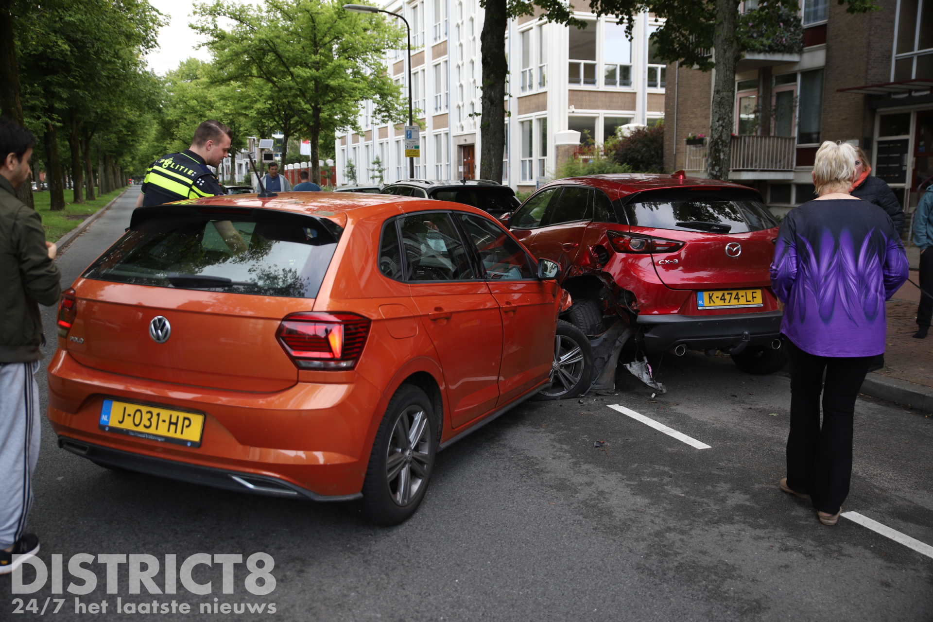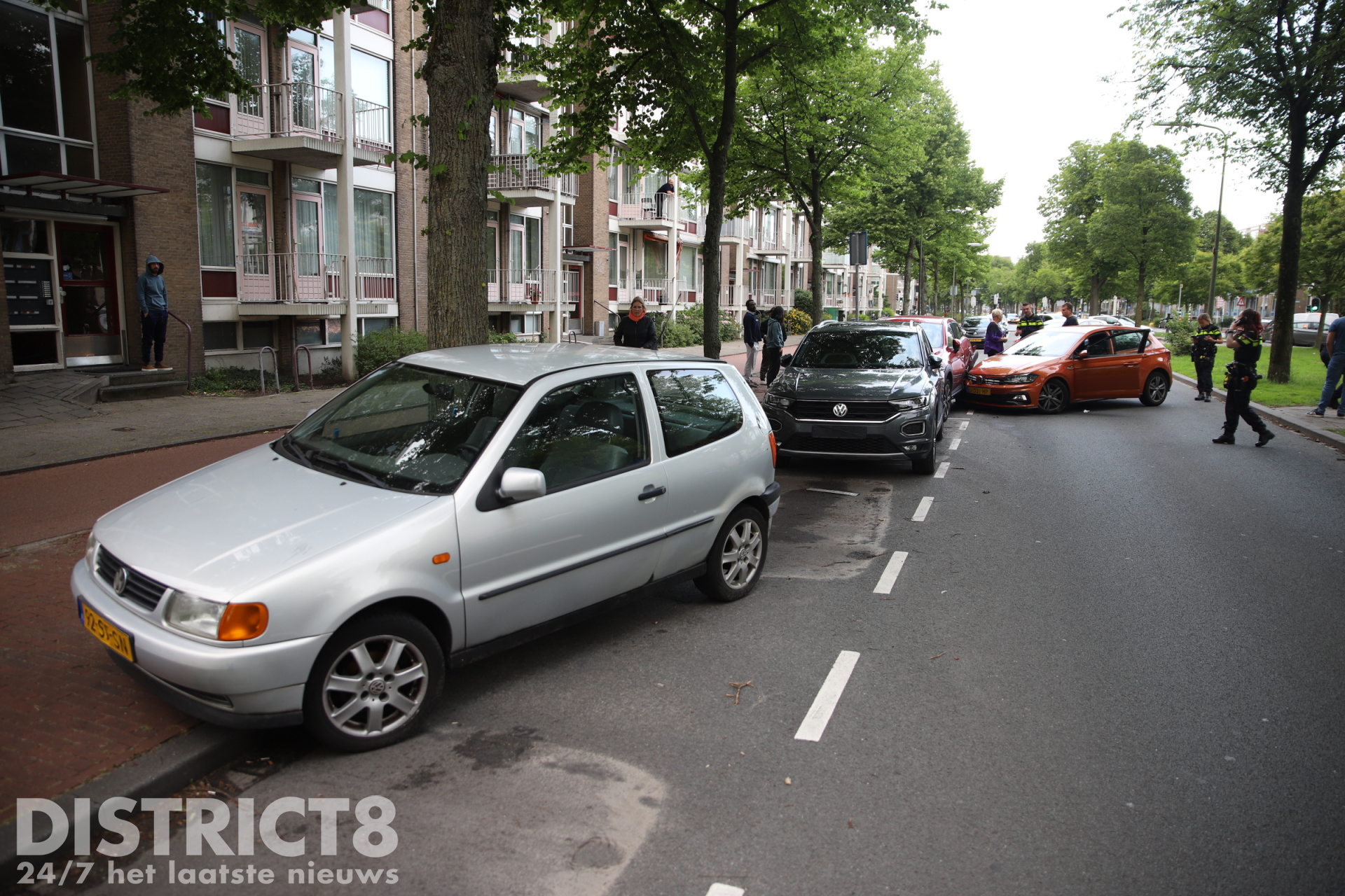 Het geparkeerde voertuig schoof hierdoor door tegen twee andere geparkeerde autos. In totaal raakten vier voertuigen beschadigd, waarvan drie fors.