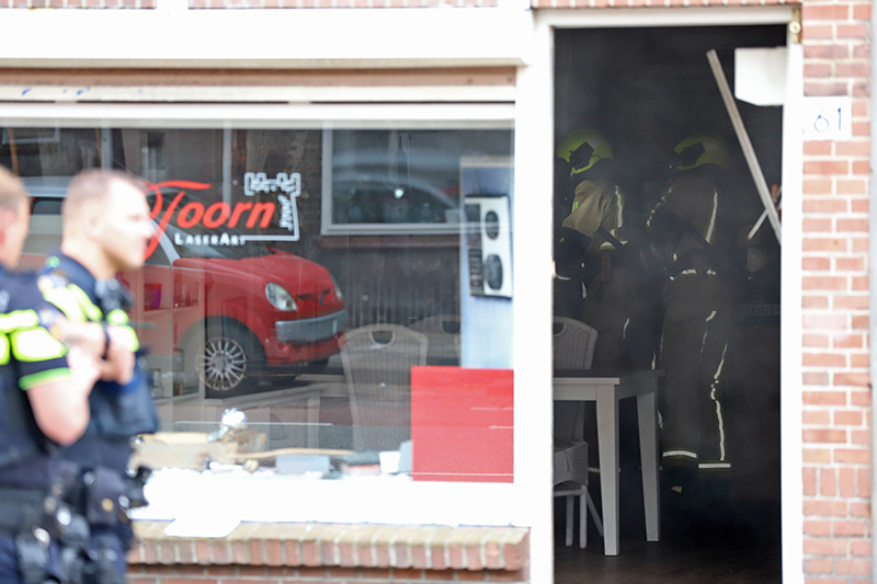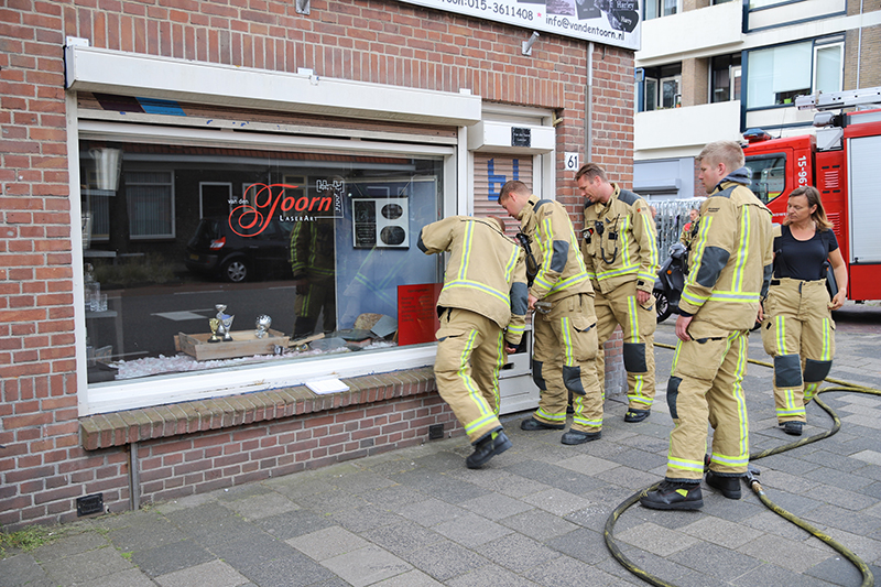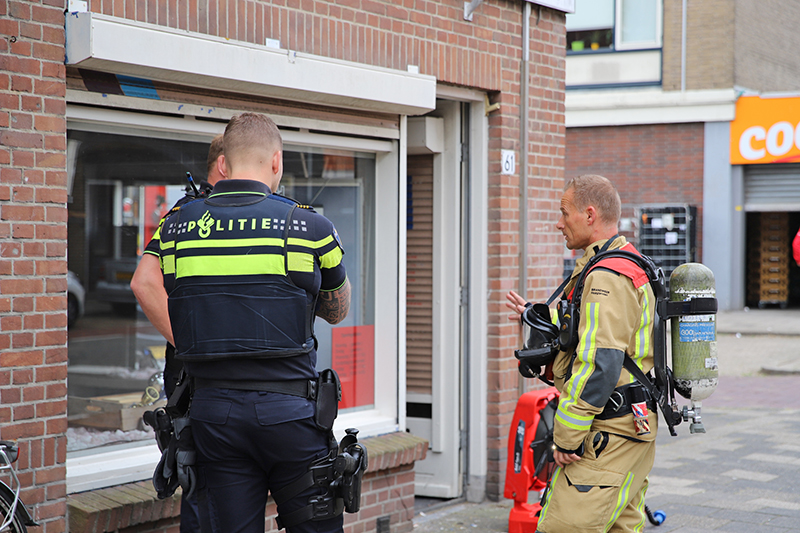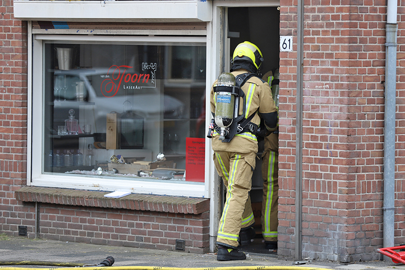 De brandweer heeft het winkelpand, die vol stond met rook, geventileerd.