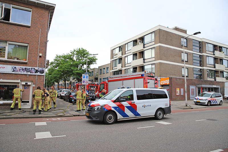 Delft – Aan de De Colignystraat in Delft is in de nacht van dinsdag 22 op woensdag 23 juni een brandje ontstaan in een winkel onder diverse woningen.
