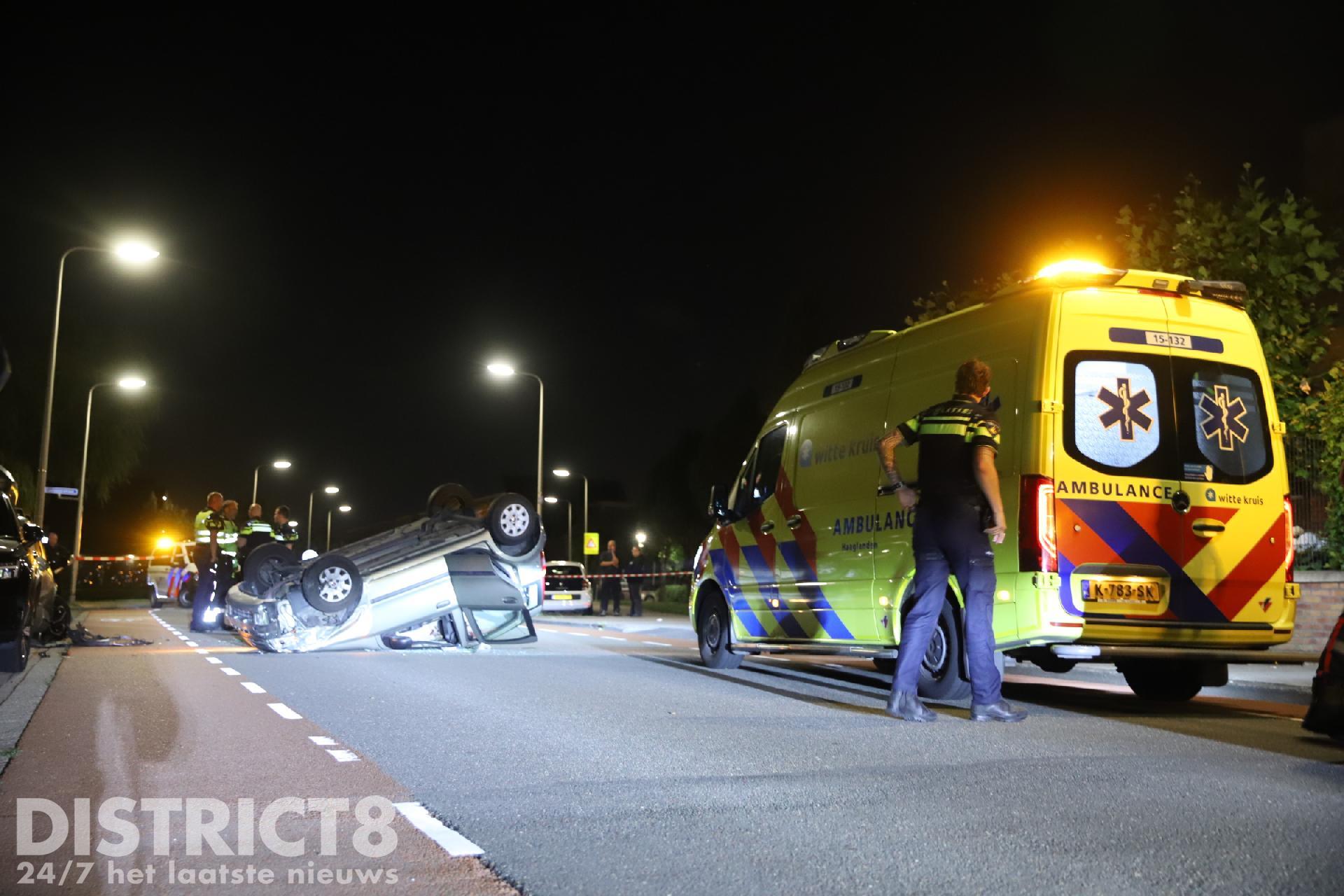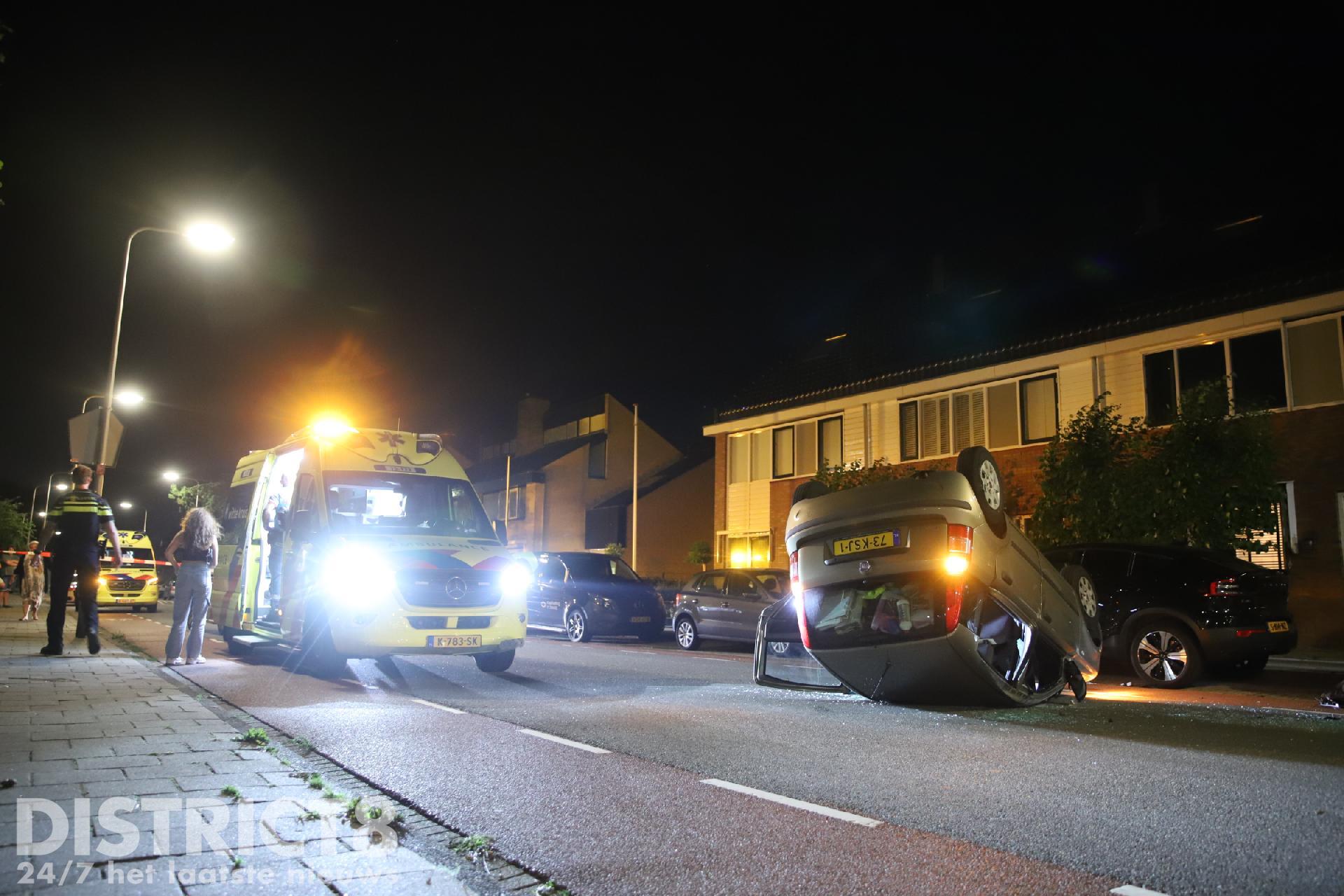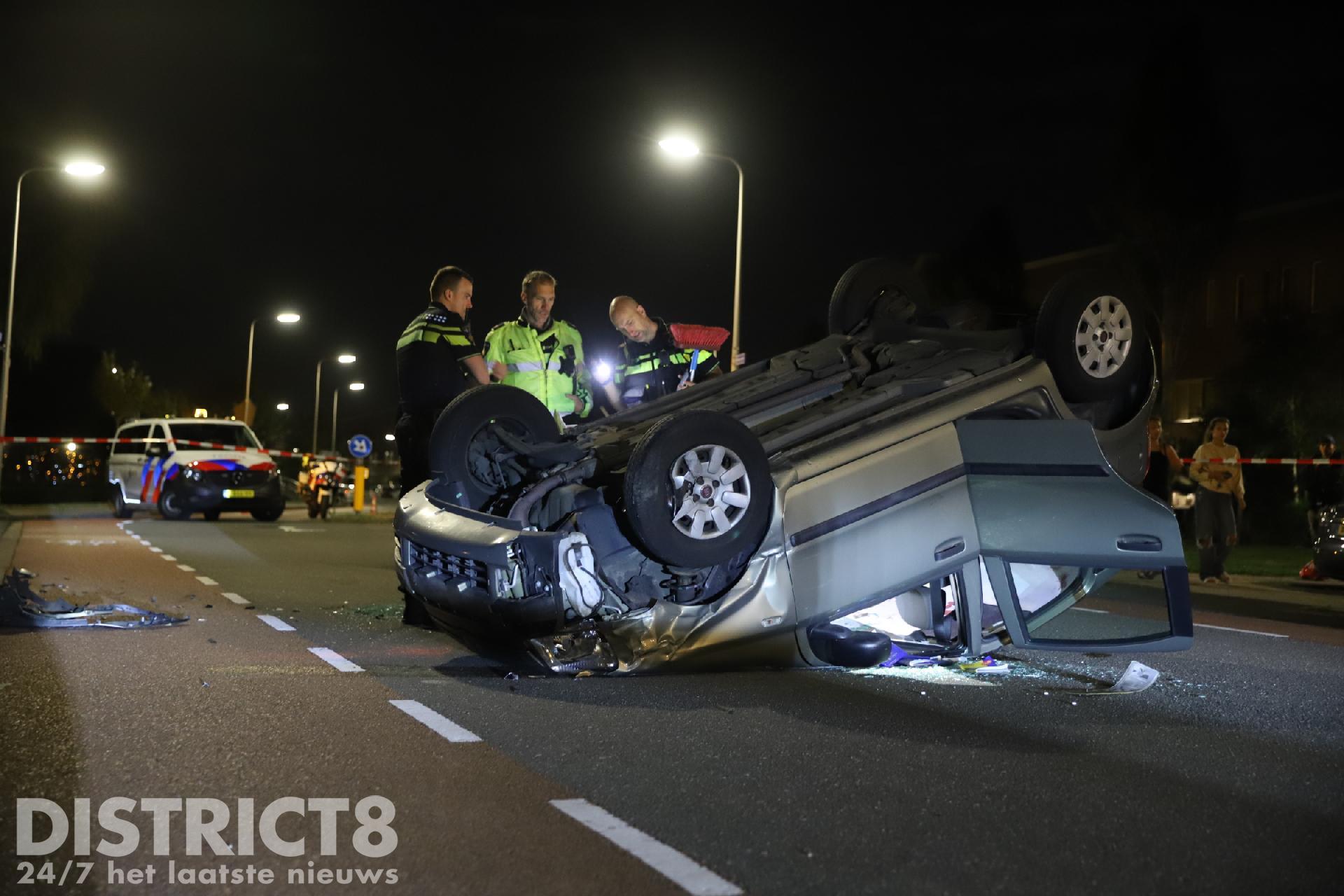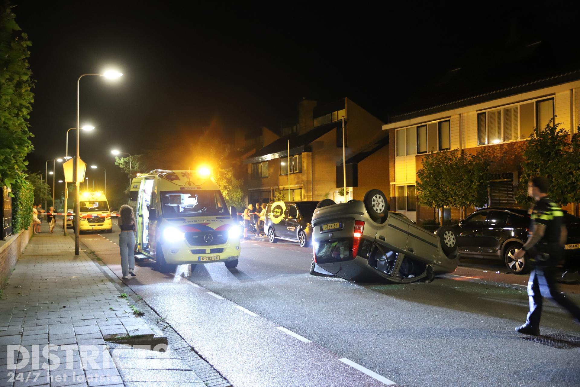 Door nog onbekende oorzaak reed de automobilist tegen een geparkeerde auto ter hoogte van de Regulierenstraat. De auto kwam op het dak tot stilstand.