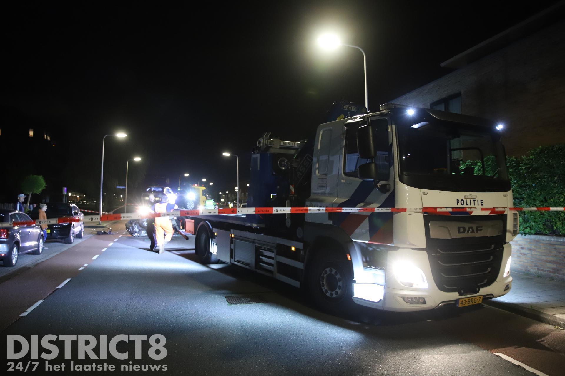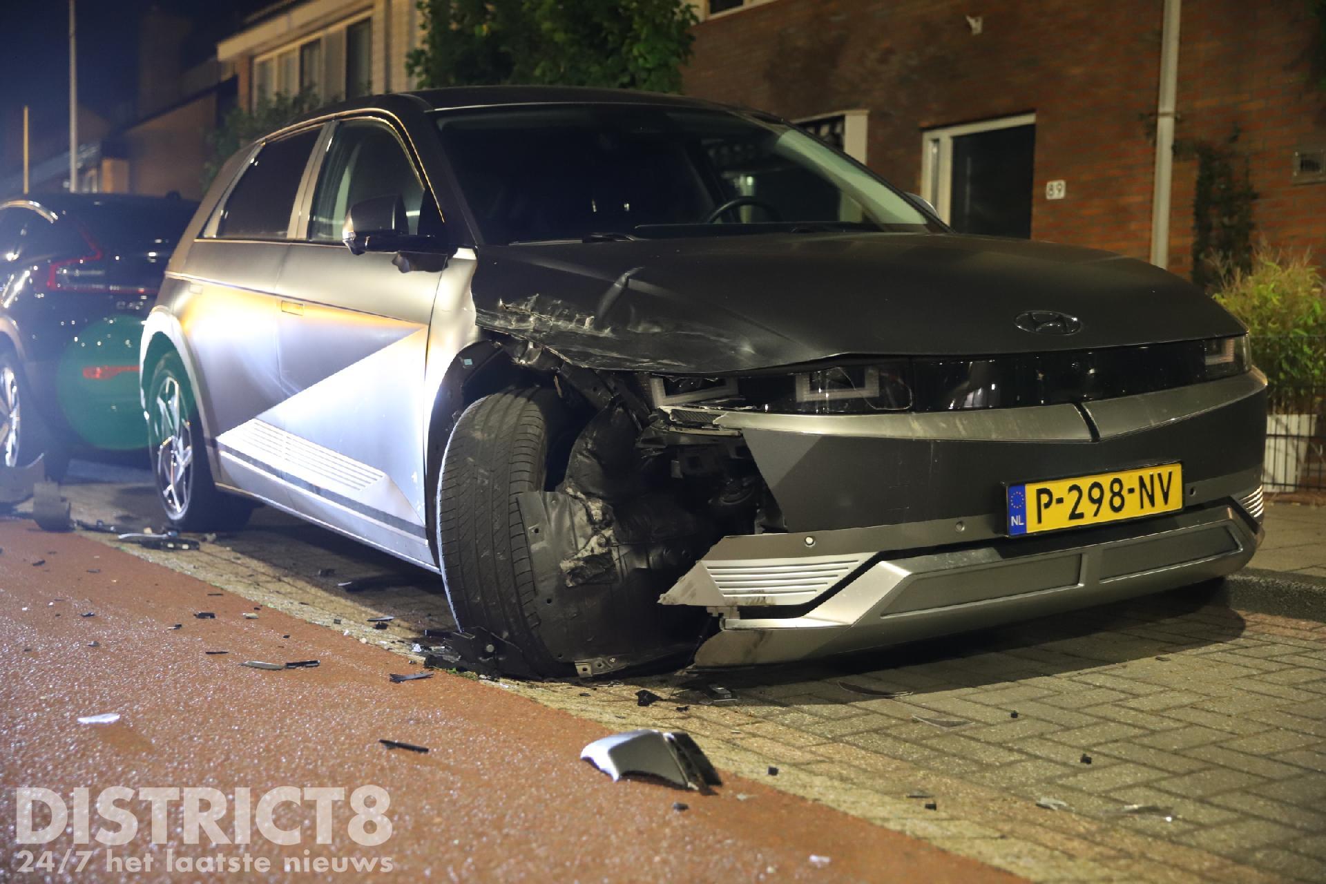 De auto is door de politie in beslag genomen voor sporenonderzoek. De geparkeerde auto moest ook door een berger worden afgesleept.