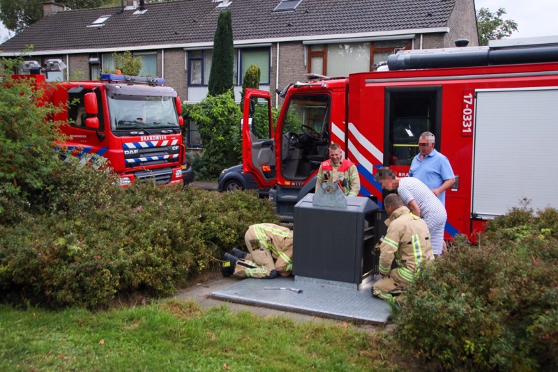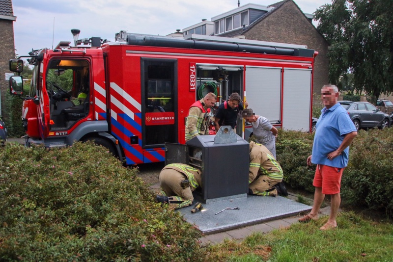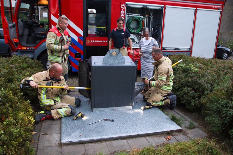 De vrouw had geluk de portemonnee zat erin. Dol blij bedankte ze de brandweer voor hun inzet.