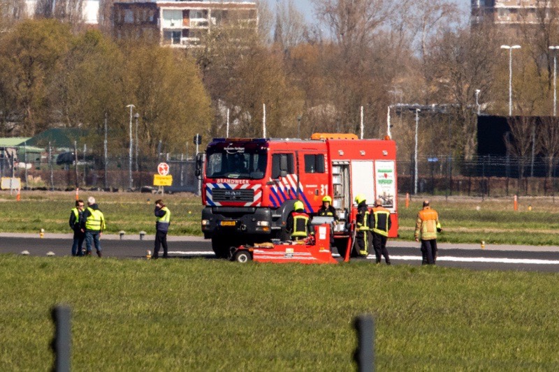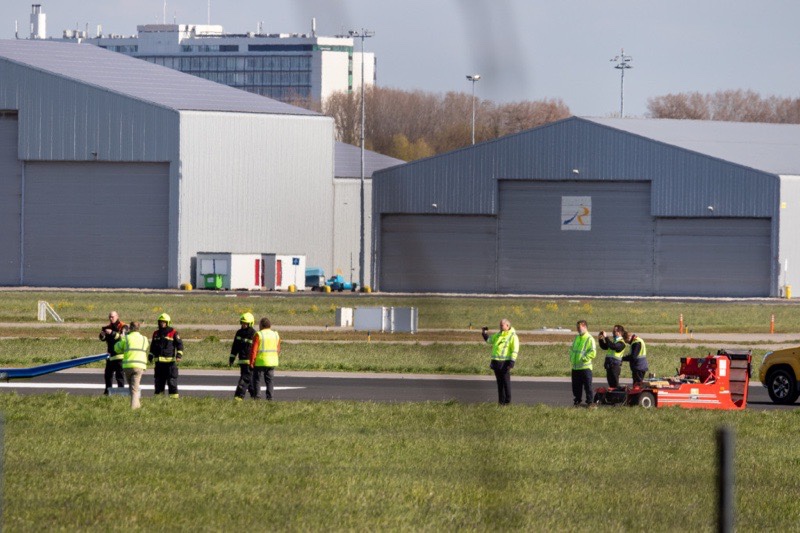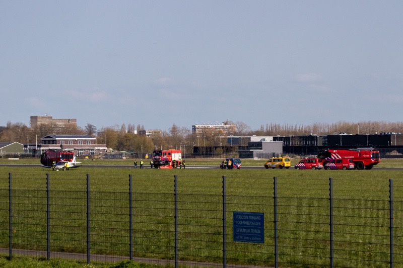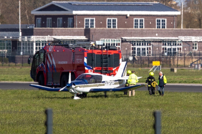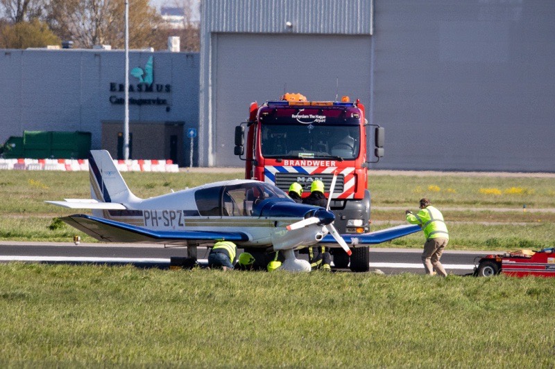 Er is echter geen brand uitgebroken. Het vliegtuigje van Vliegclub Rotterdam kwam zo’n 15 meter buiten de baan in het gras tot stilstand.