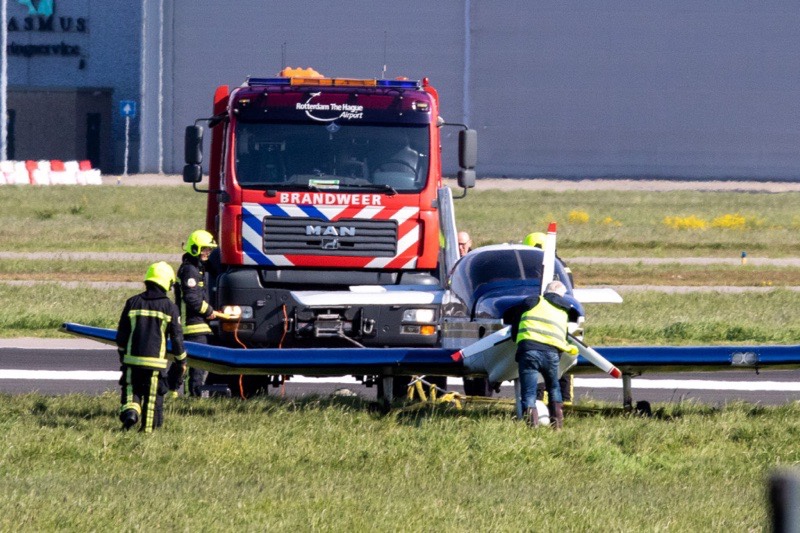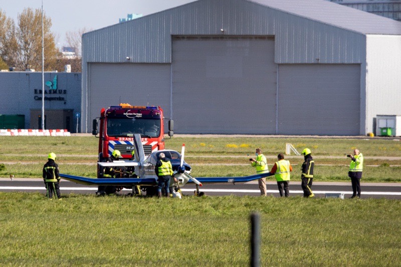 Rotterdam – Zaterdagmiddag is een klein vliegtuigje naast de baan geraakt op Rotterdam The Hague Airport. Uit voorzorg zijn twee crashtenders uitgerukt.