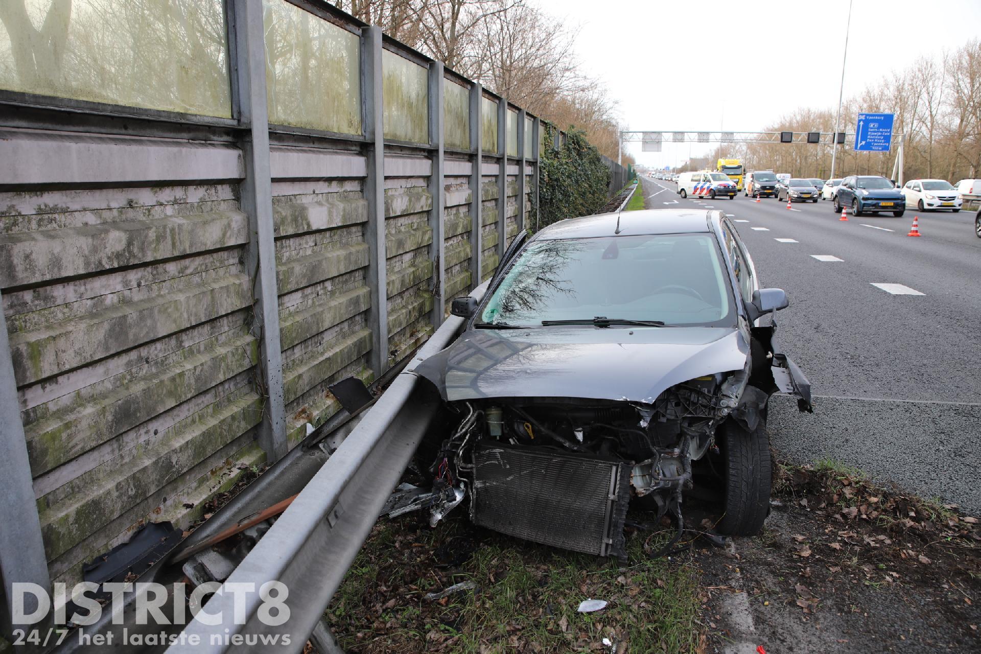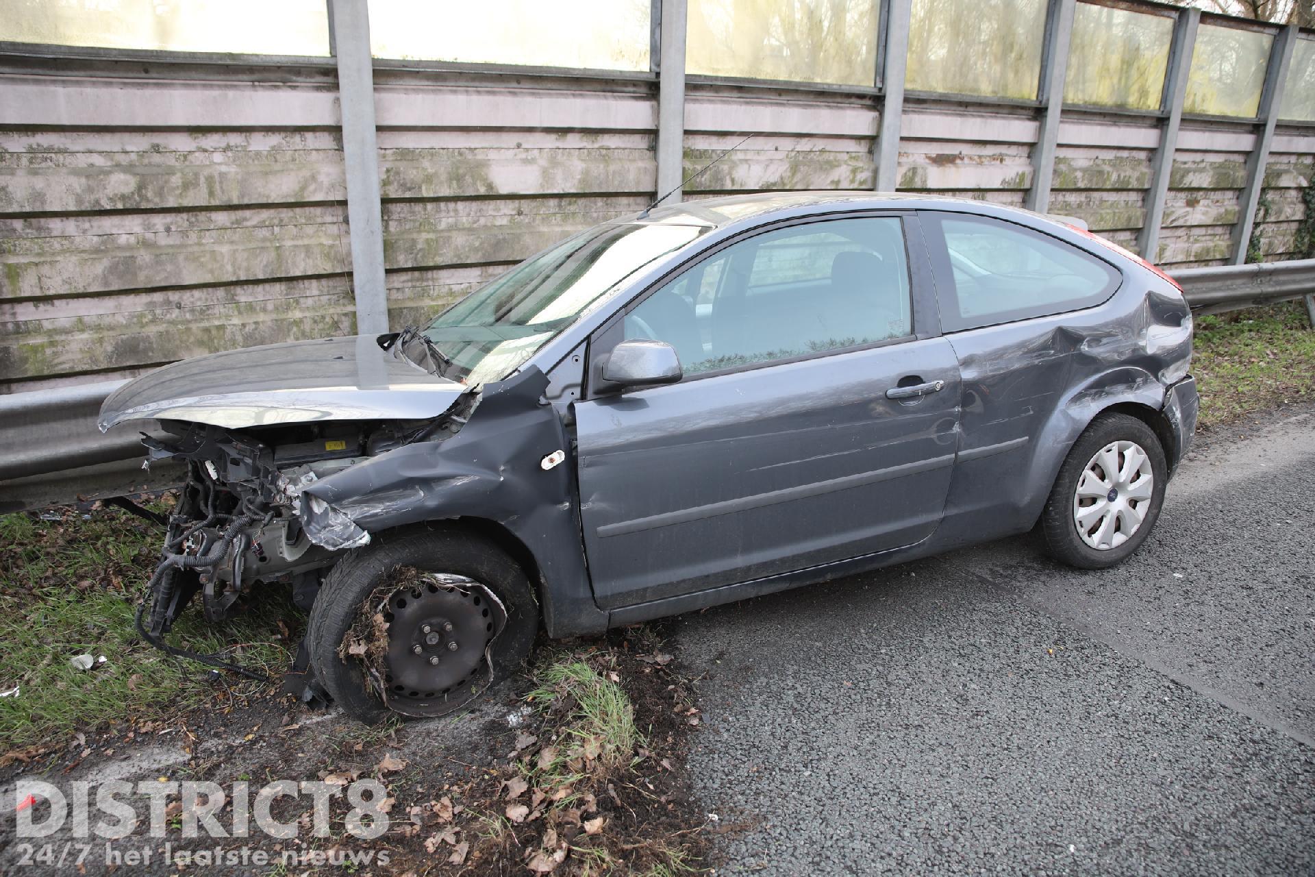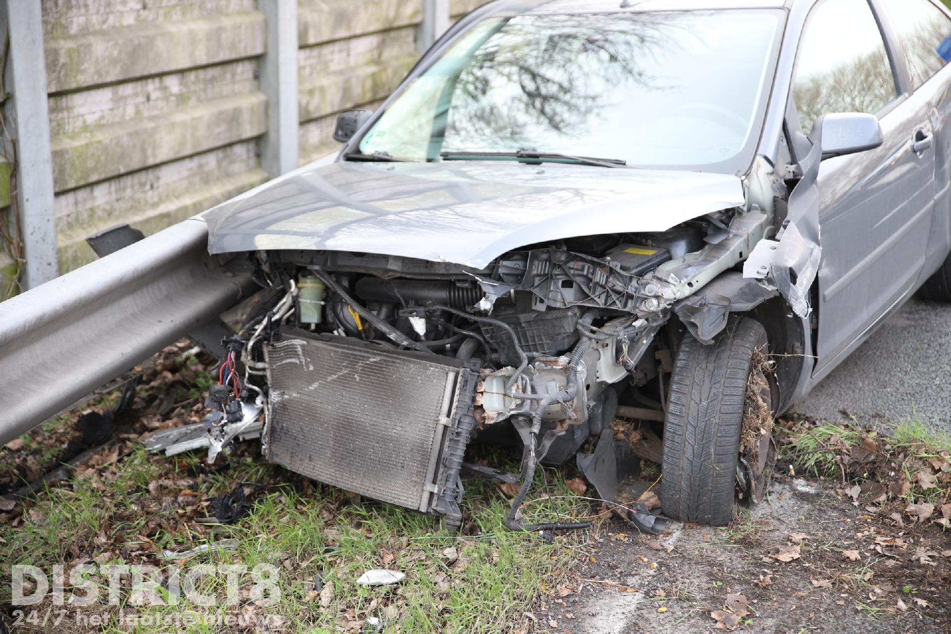 Eén personen auto samen met de vangrail raakte zwaar beschadigd, volgens een bestuurder heeft een vrachtwagen het ongeluk veroorzaakt en is hierna doorgereden. De met spoed ter plaatse gekomen ambulance kon al snel weer door, er bleek gelukkig niemand gewond te zijn geraakt.