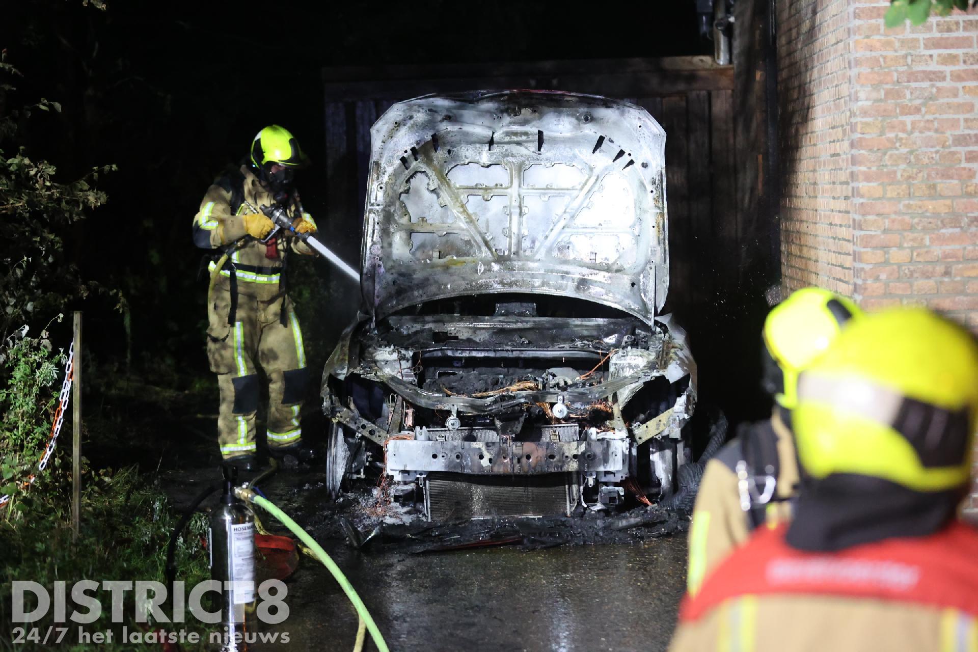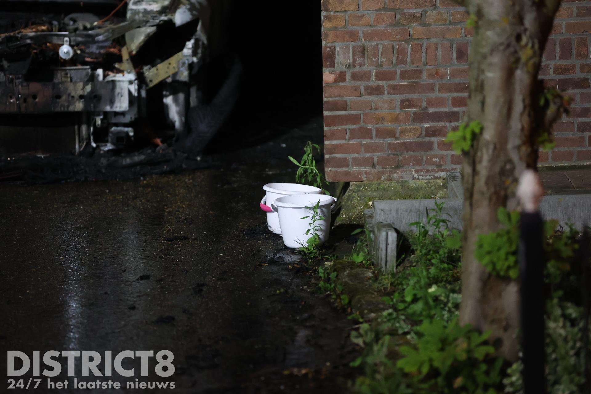 Ondanks de poging van de bewoners om het vuur met emmers water te blussen, kon men niet voorkomen dat het voertuig volledig uitbrandde.