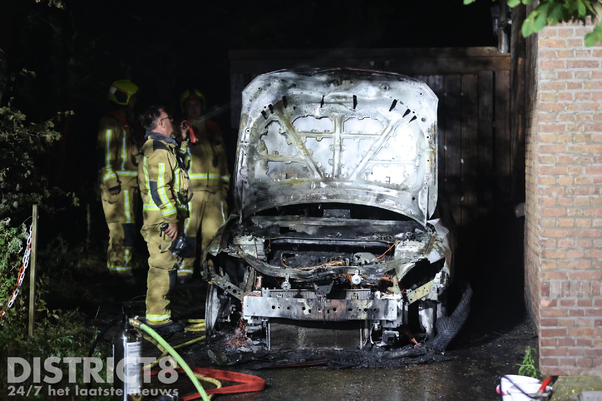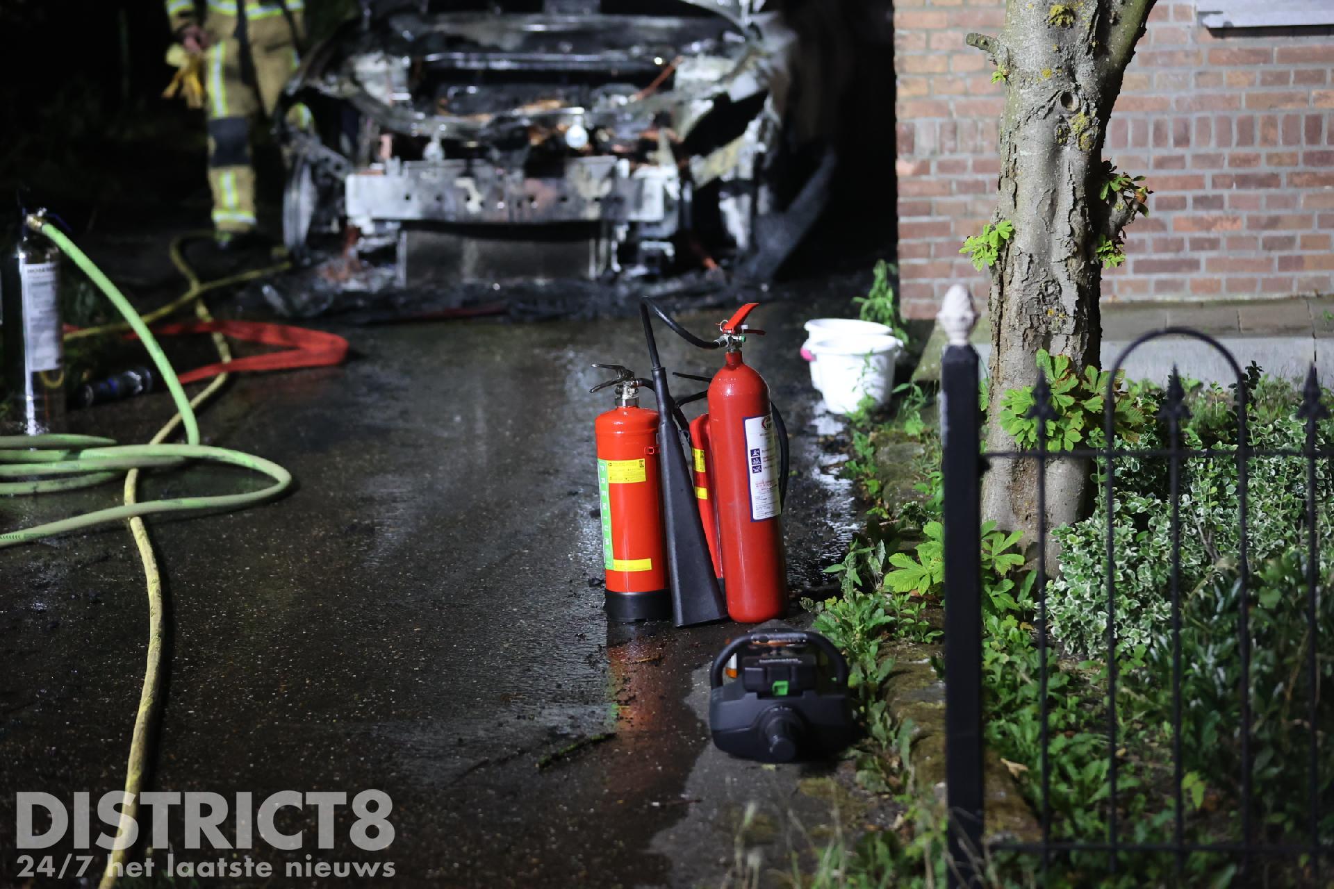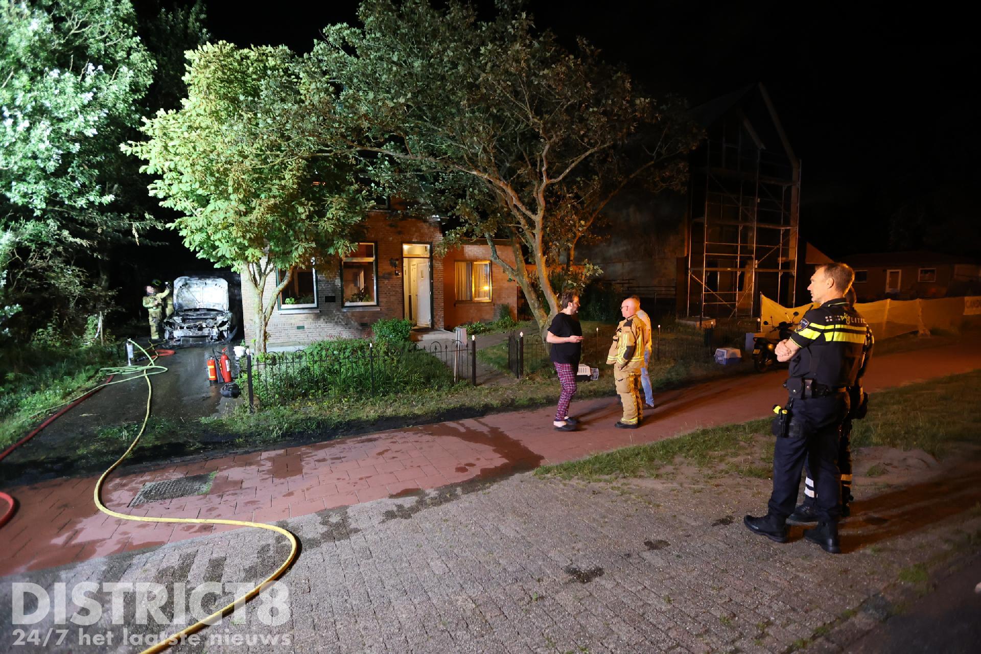 Direct werd de brandweer met spoed gealarmeerd. Ter plaatse troffen de hulpdiensten een brandend voertuig op een oprit aan, dicht bij een woning.
