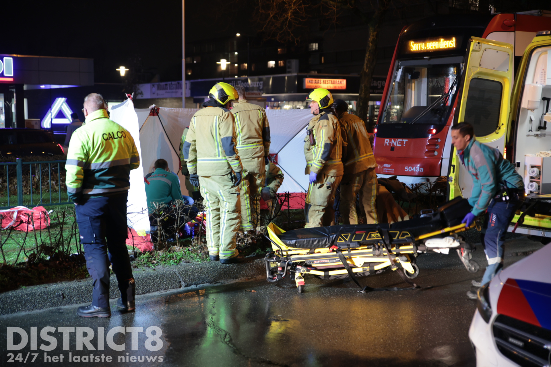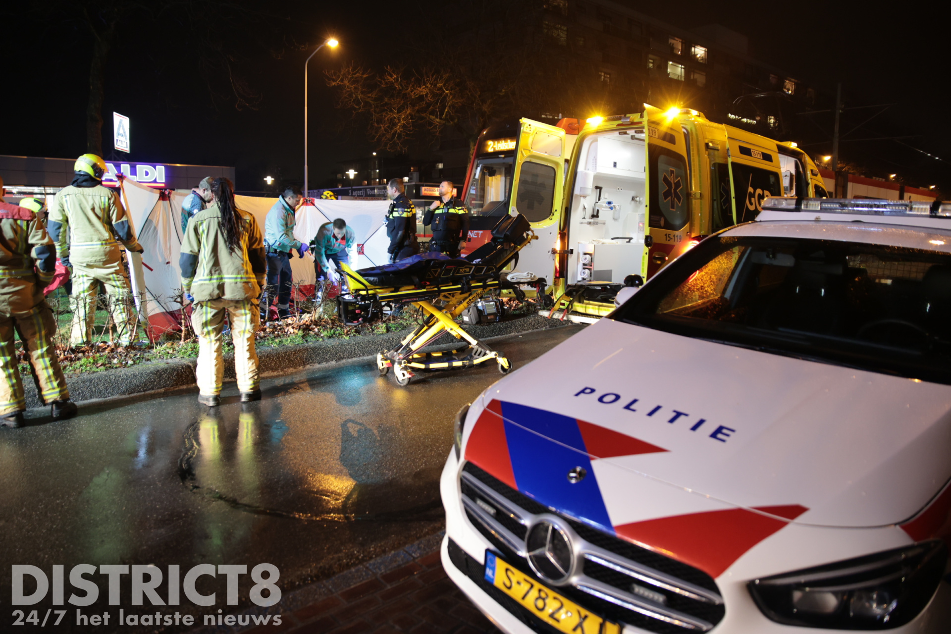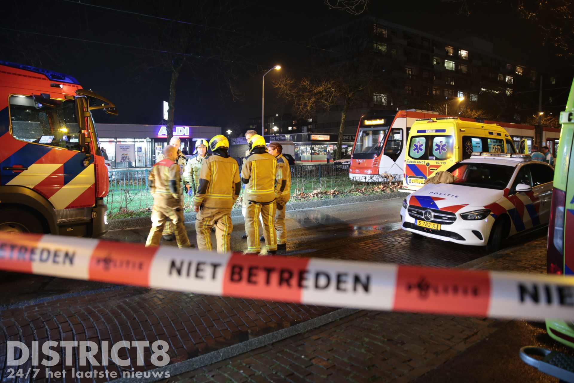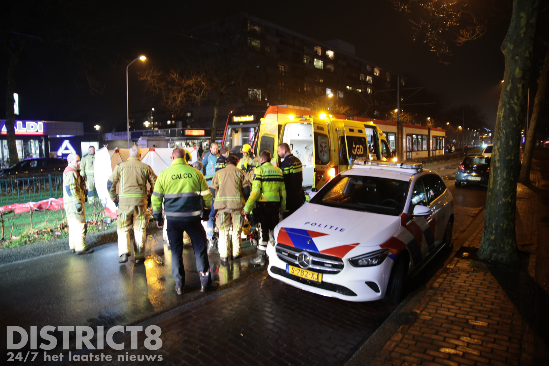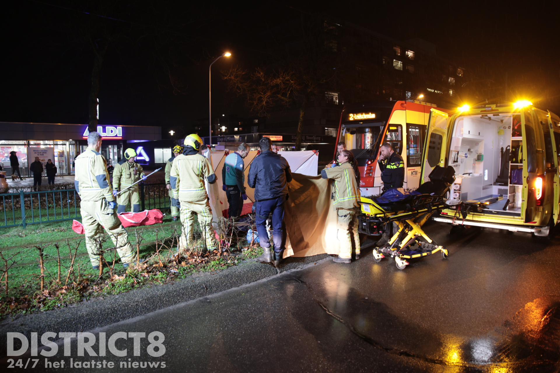 Even na zeven uur ging het mis. Op de trambaan ter hoogte van de Aldi supermarkt ging het mis. De voetganger stak de trambaan over en werd daarbij geschept. De tram kwam enkele meters verderop tot stilstand.