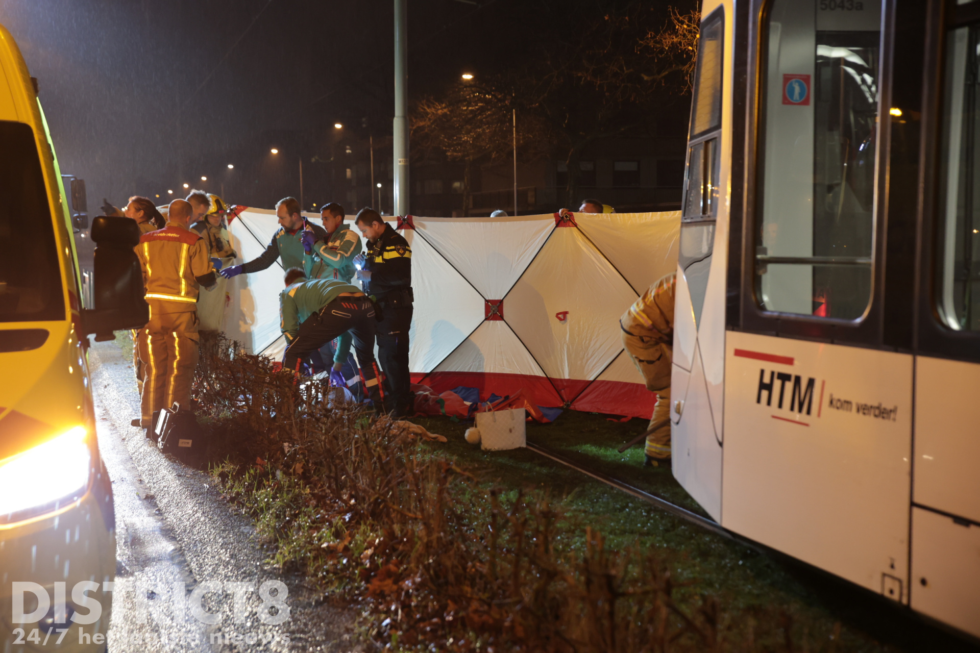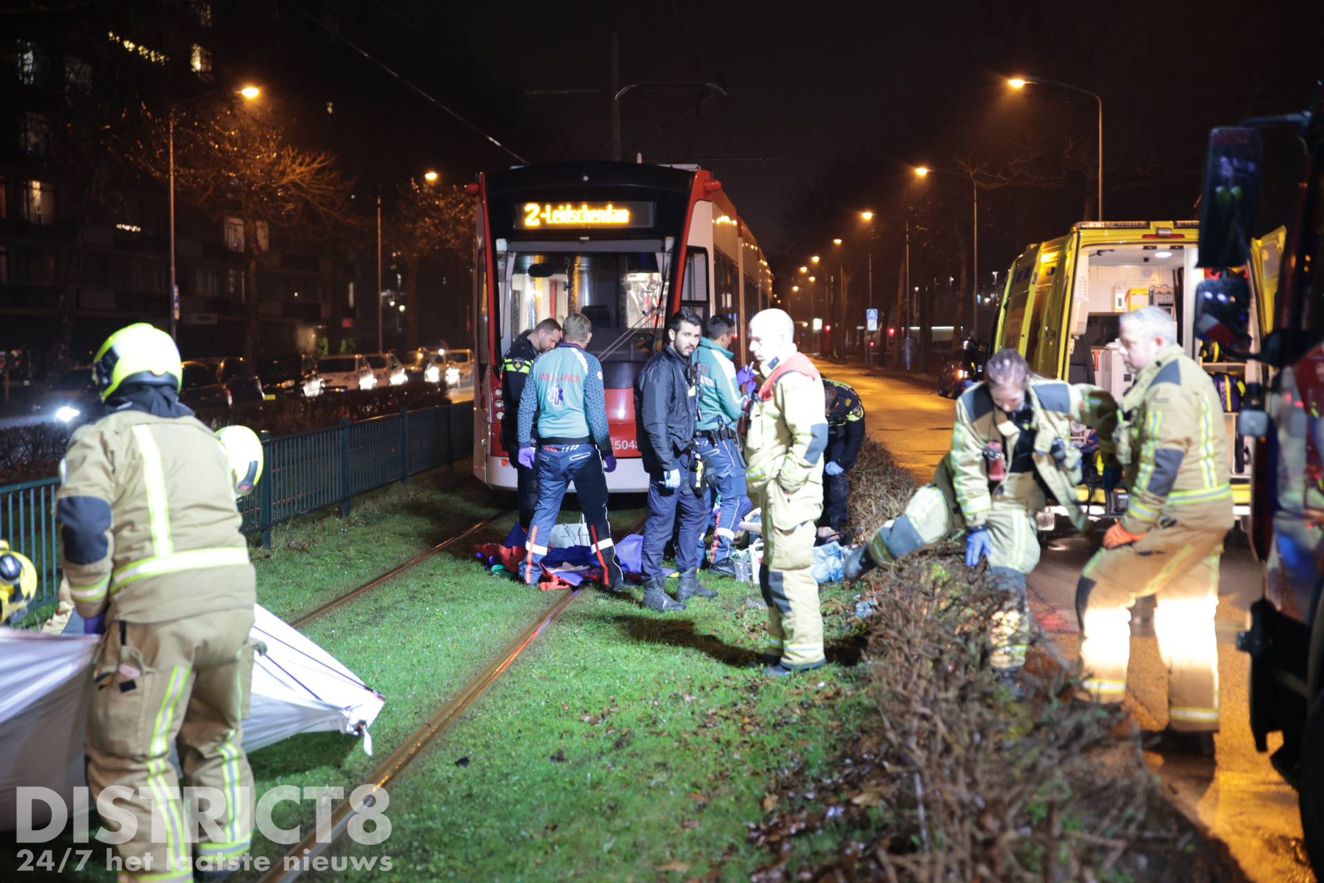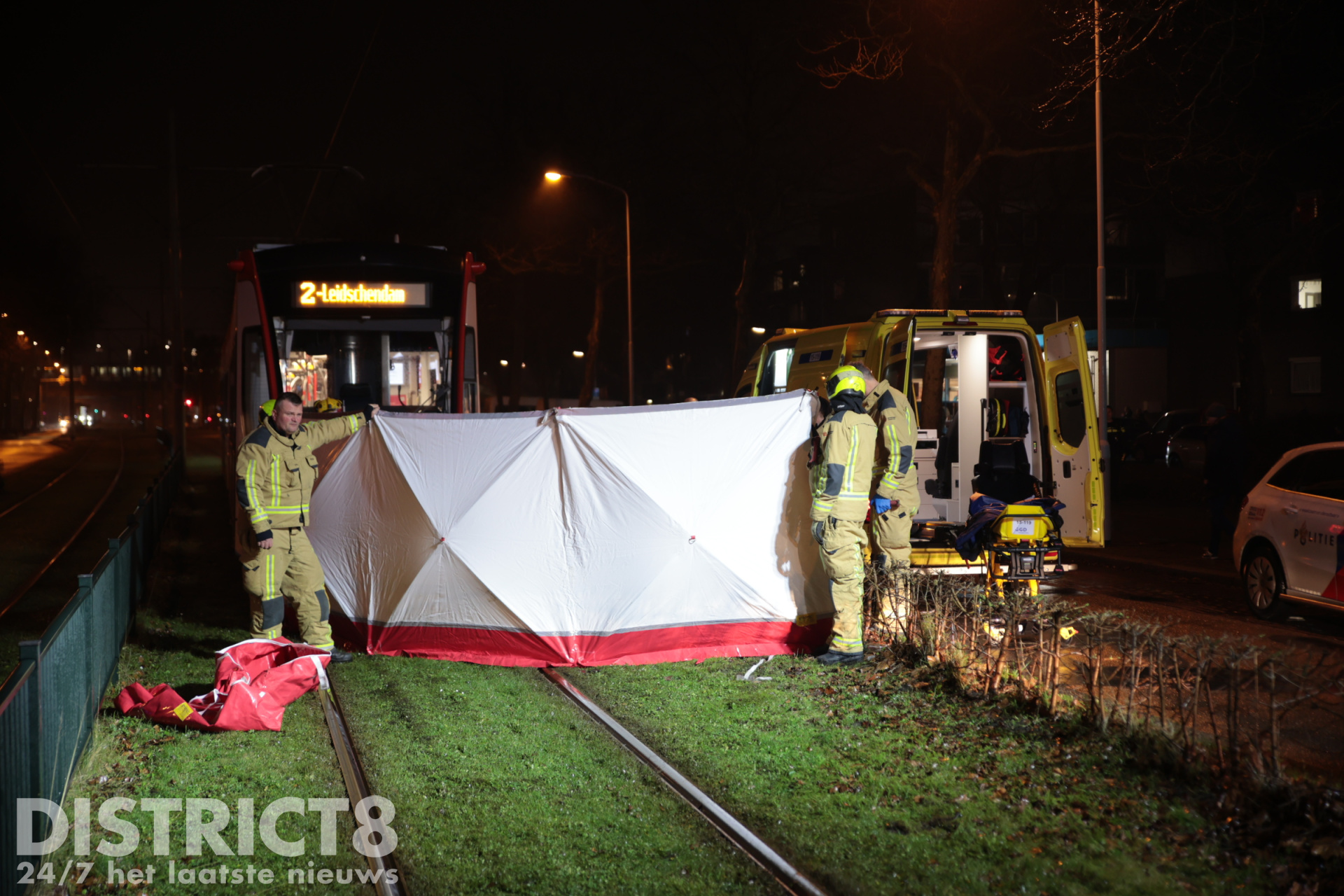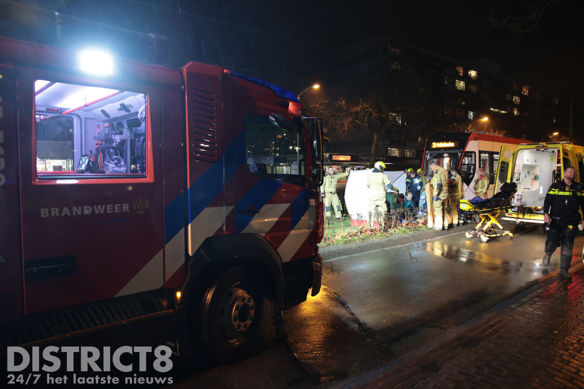 Even na zeven uur ging het mis. Op de trambaan ter hoogte van de Aldi supermarkt ging het mis. De voetganger stak de trambaan over en werd daarbij geschept. De tram kwam enkele meters verderop tot stilstand.