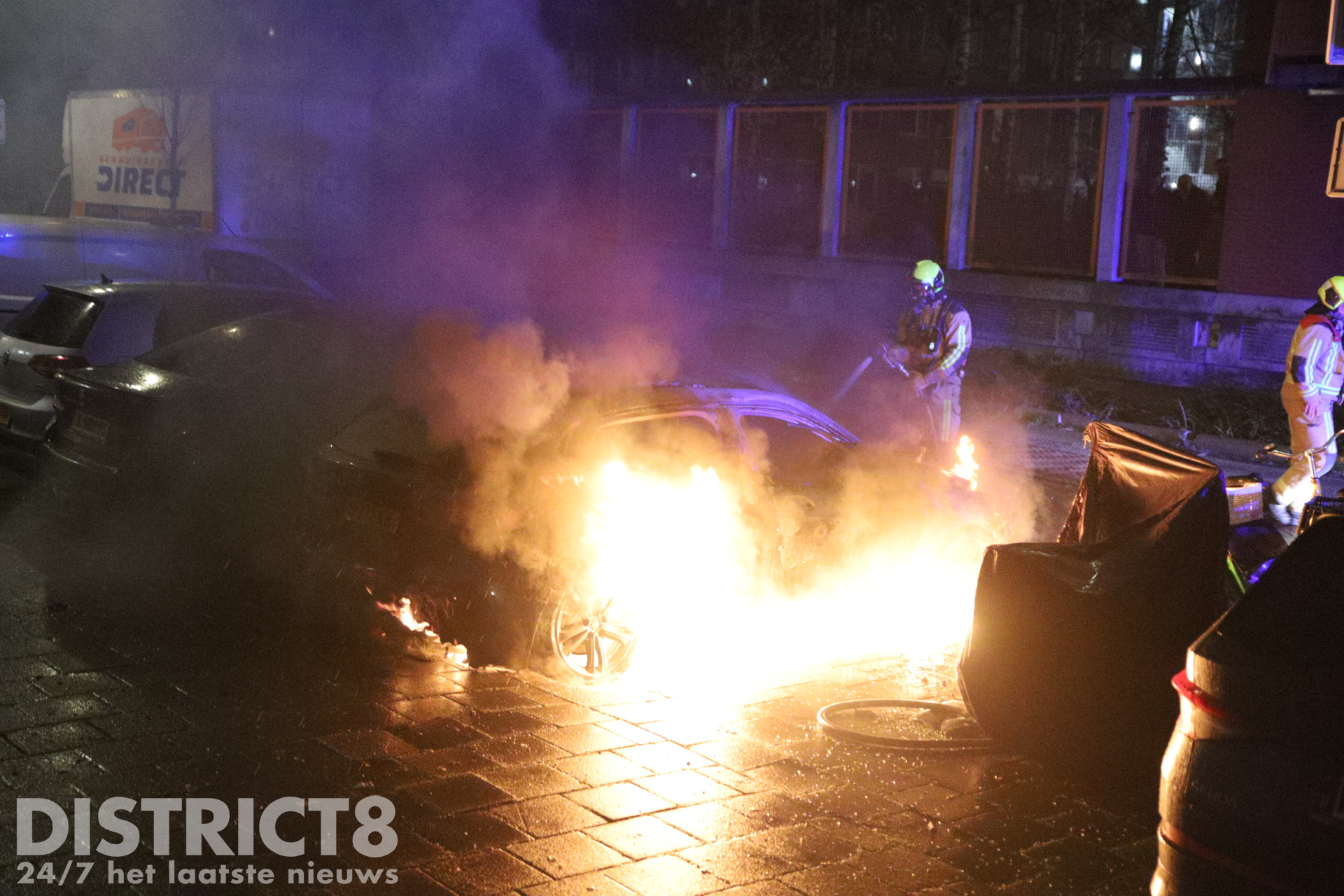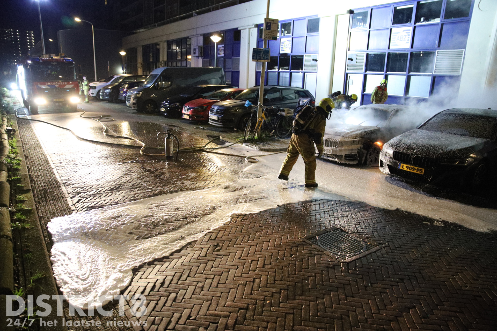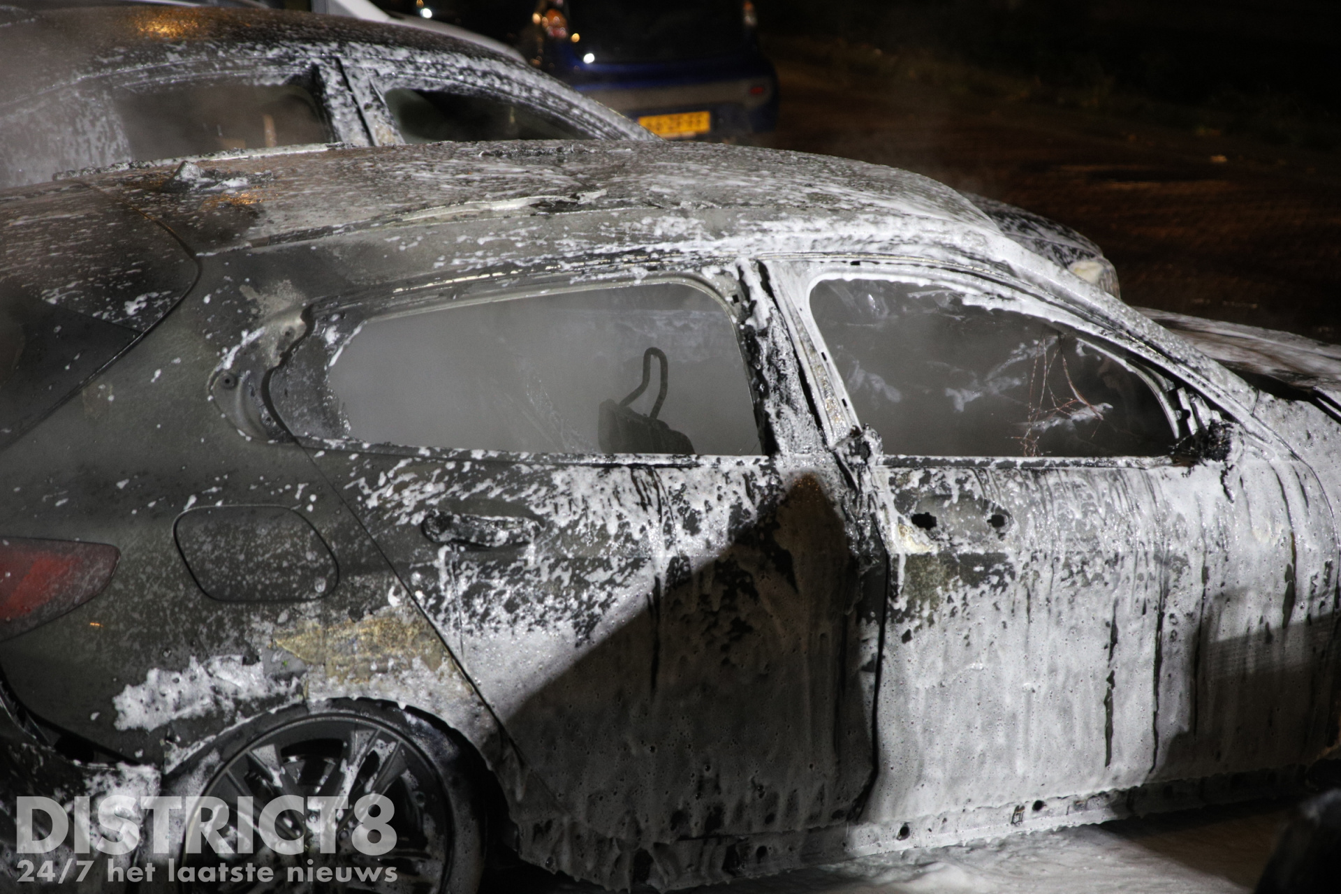 Volledige verwoesting van twee auto’s door brand Tak van Poortvlietstraat Den Haag