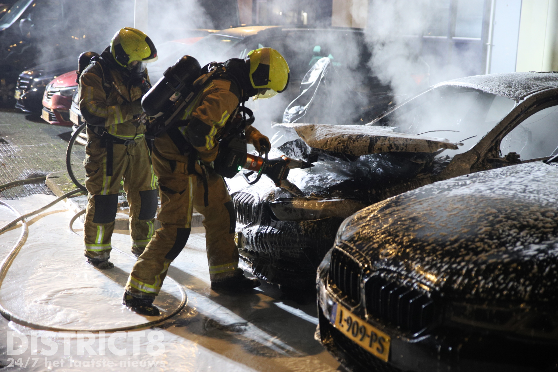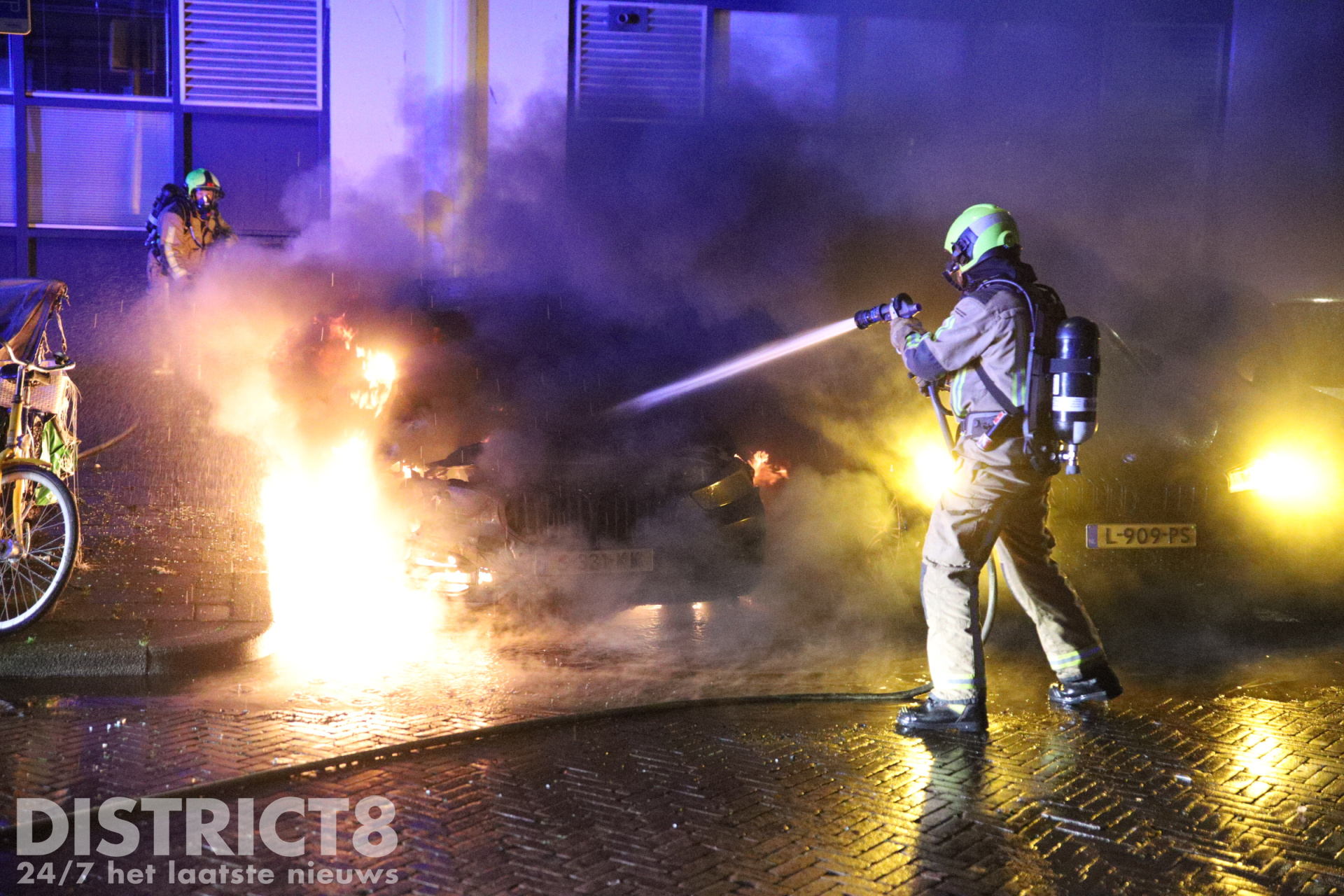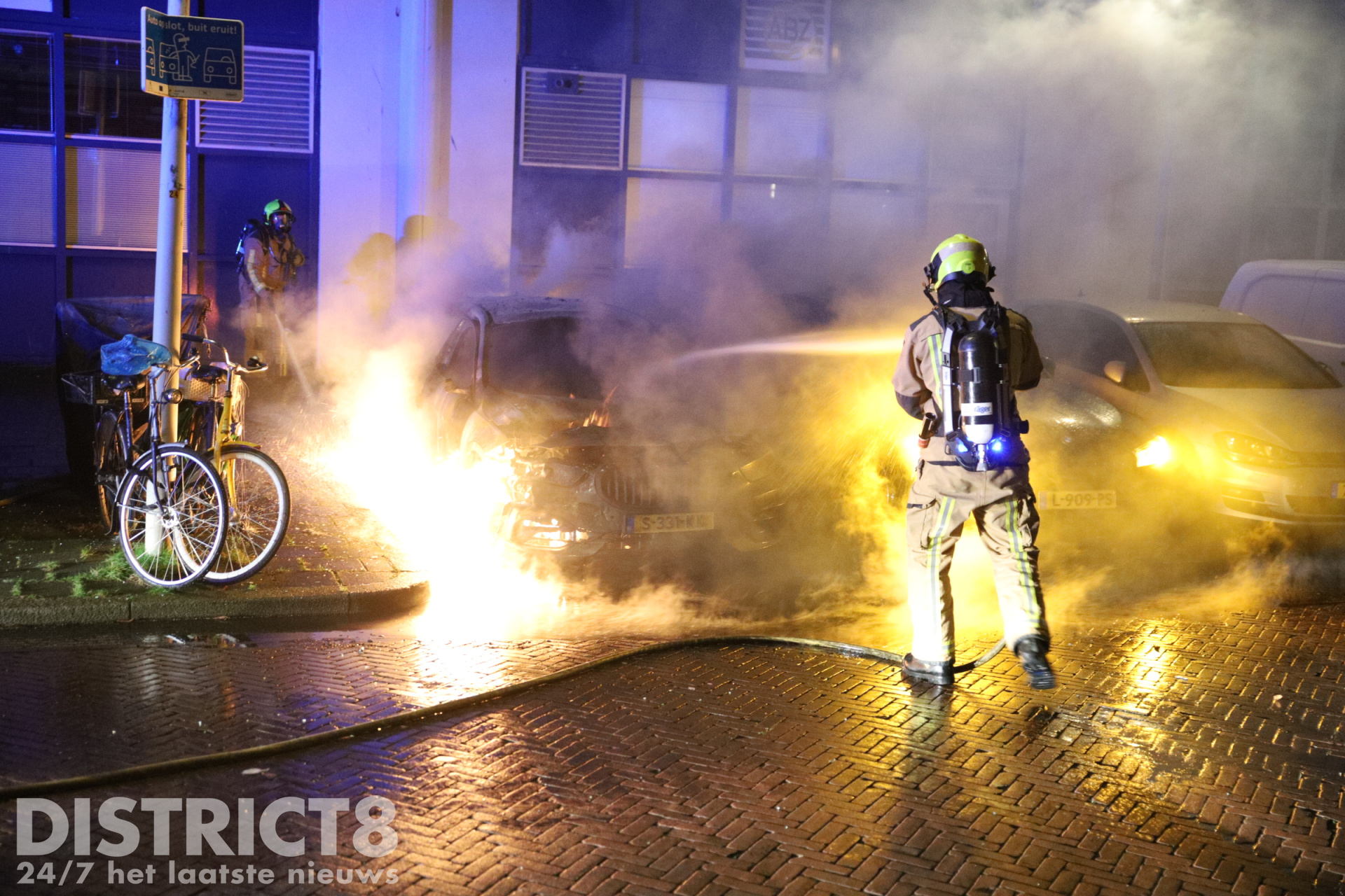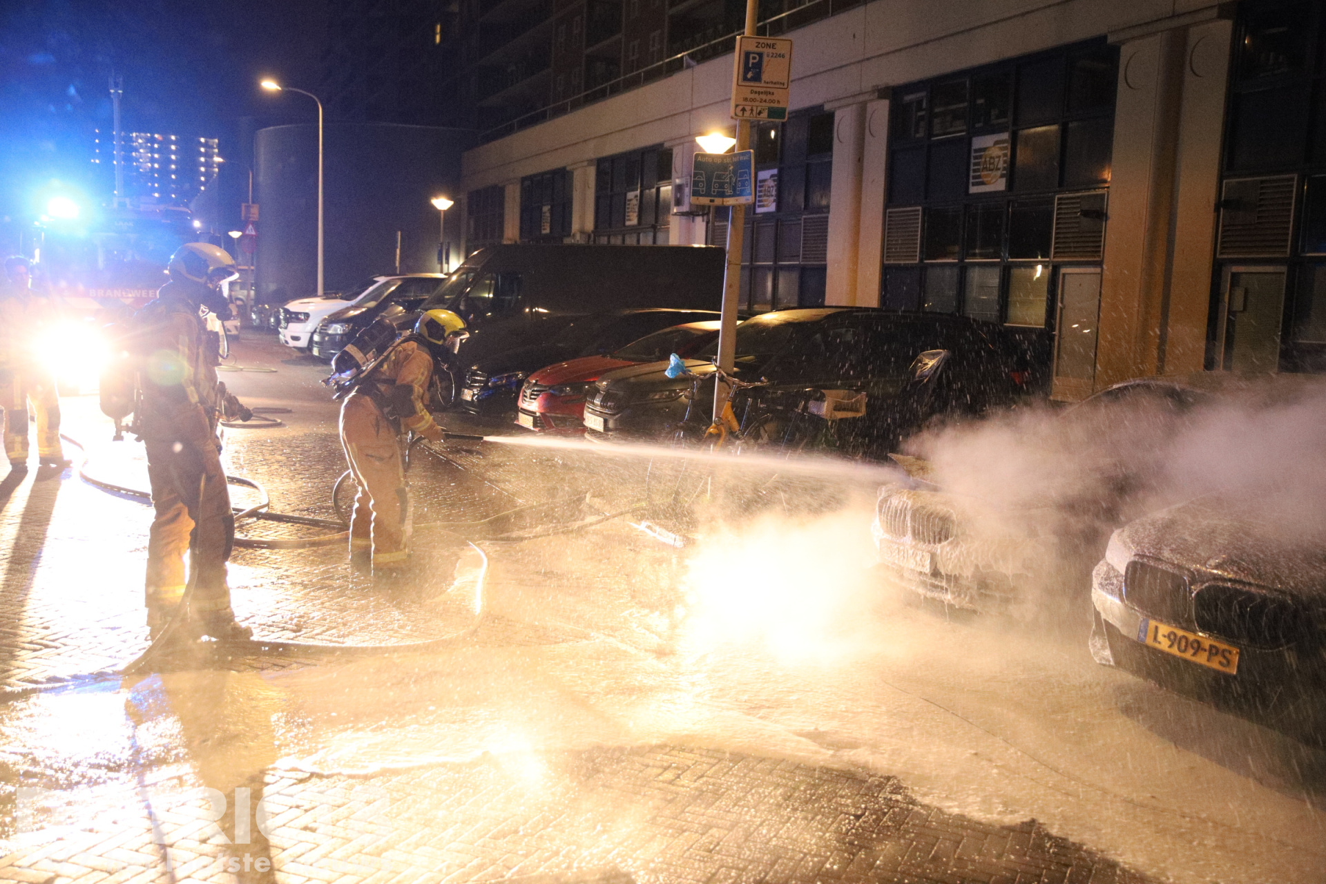 Volledige verwoesting van twee auto’s door brand Tak van Poortvlietstraat Den Haag