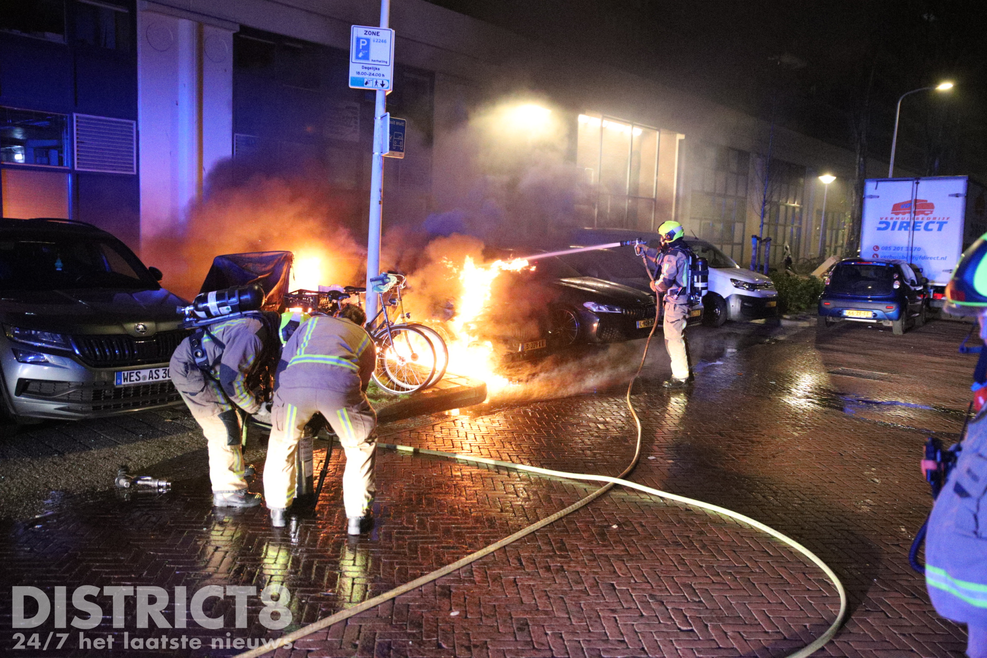 Den Haag – In de nacht van maandag op dinsdag 16 december zijn twee geparkeerde BMW’s op de Tak van Poortvlietstraat volledig verwoest door een flinke autobrand. Rond kwart over twee brak er brand uit in een van de voertuigen. Het vuur verspreidde zich snel naar de naastgelegen BMW, waardoor ook deze auto in brand vloog.