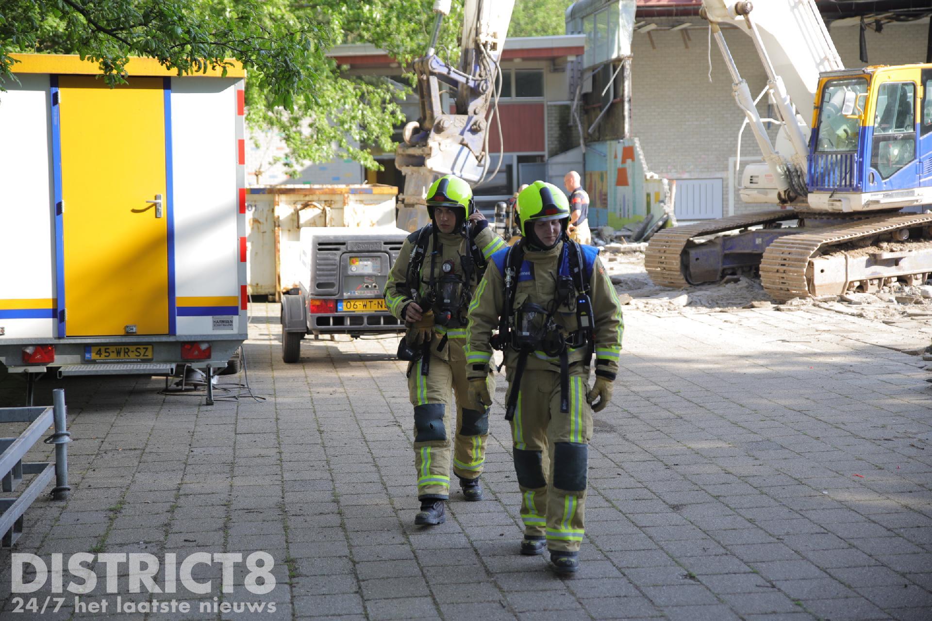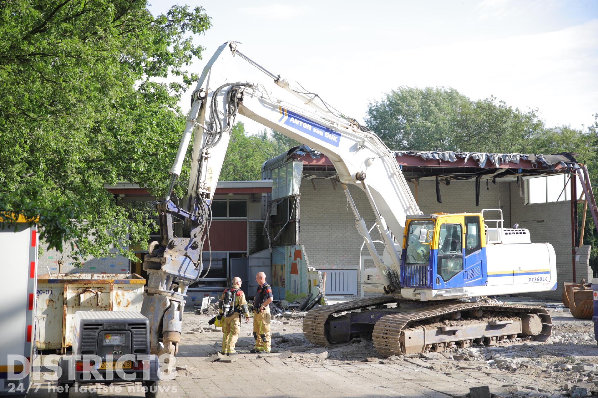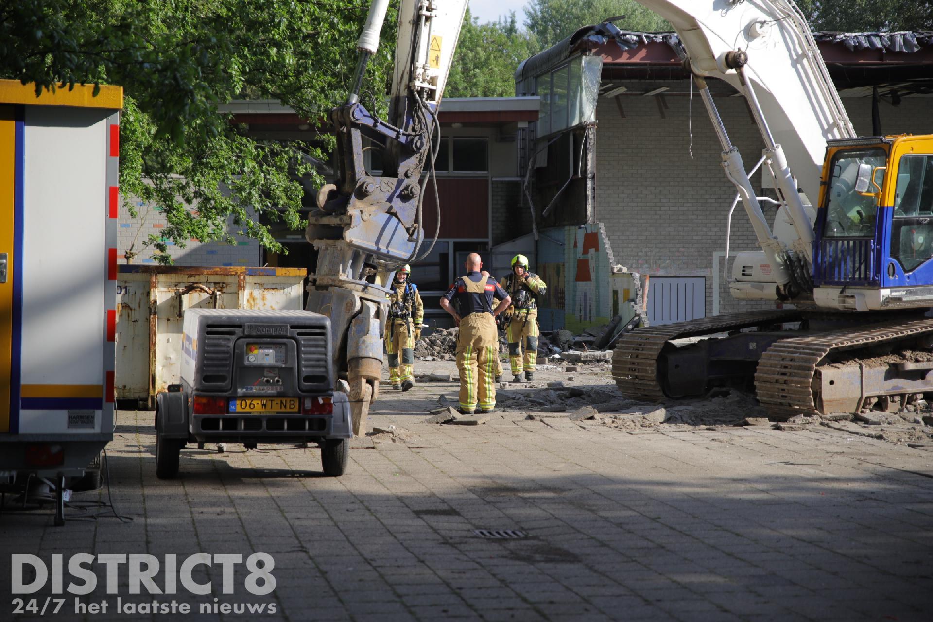 Een deel van de school is al gesloopt. Volgens de brandweer is dit al de zevende keer dat er brand is in dit leegstaande pand.