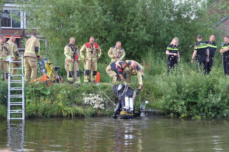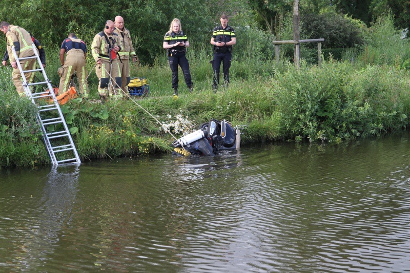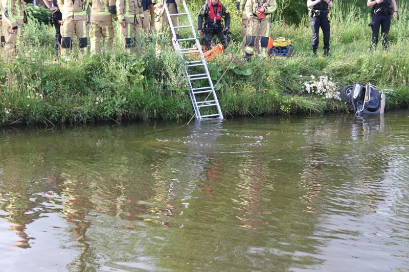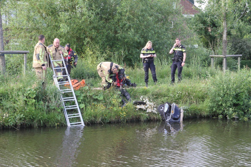 Hoe de scooter in het water terecht is gekomen, is onbekend.