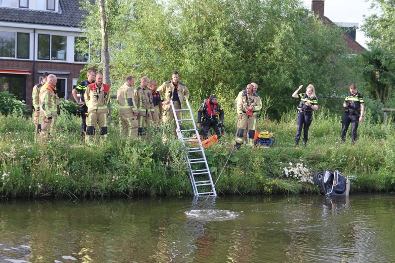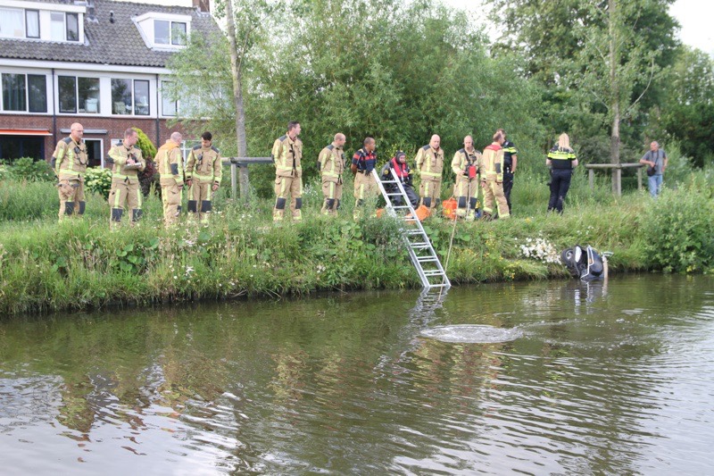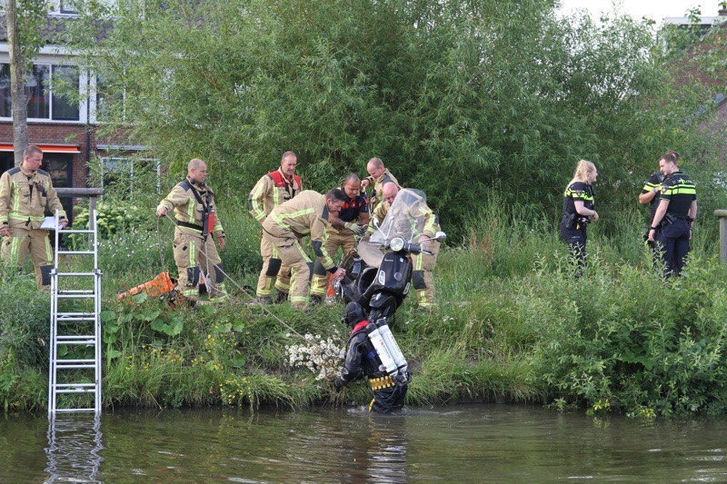Een getuige zag deze morgen een scooter in het water liggen vanaf de Sionsweg in Rijswijk en belde direct de hulpdiensten.