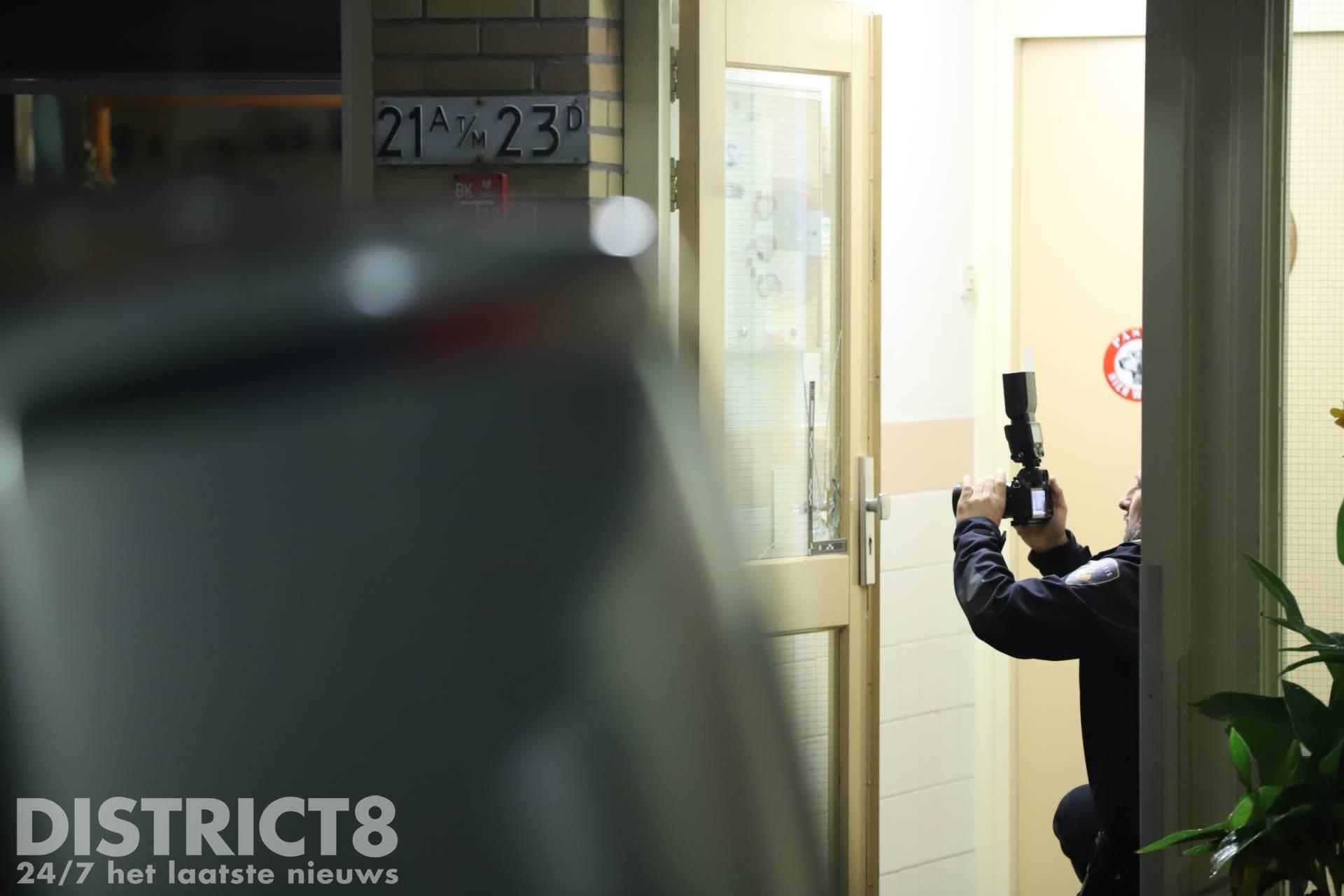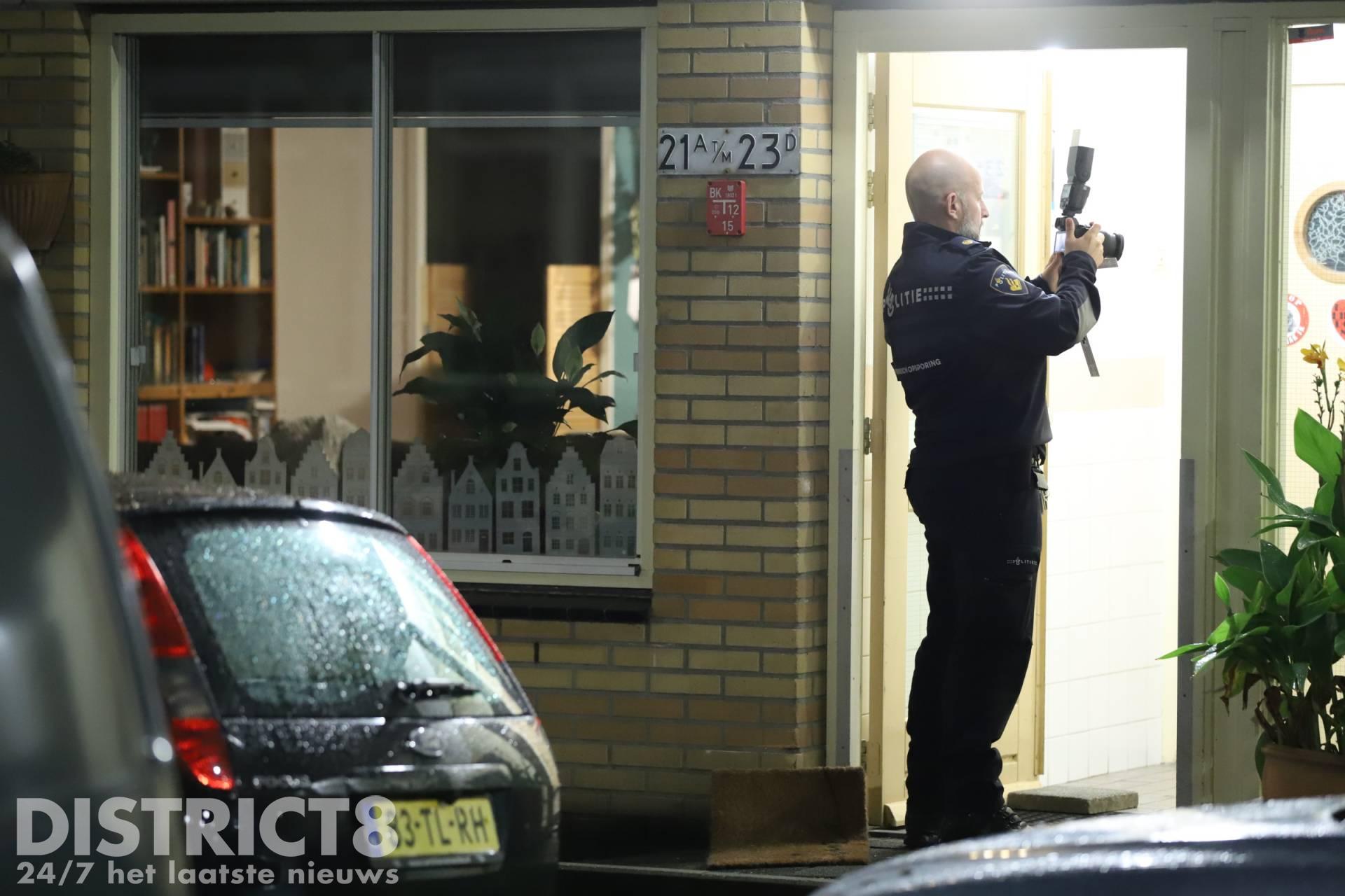 De politie heeft de straat afgezet als Plaats Delict (PD) en gezocht naar sporen. In de portiek zouden drie hulzen zijn veiliggesteld door de FO (Forensische Opsporing). De FO heeft ook de vernielde ruit op beeld gebracht en overige sporen vastgelegd.