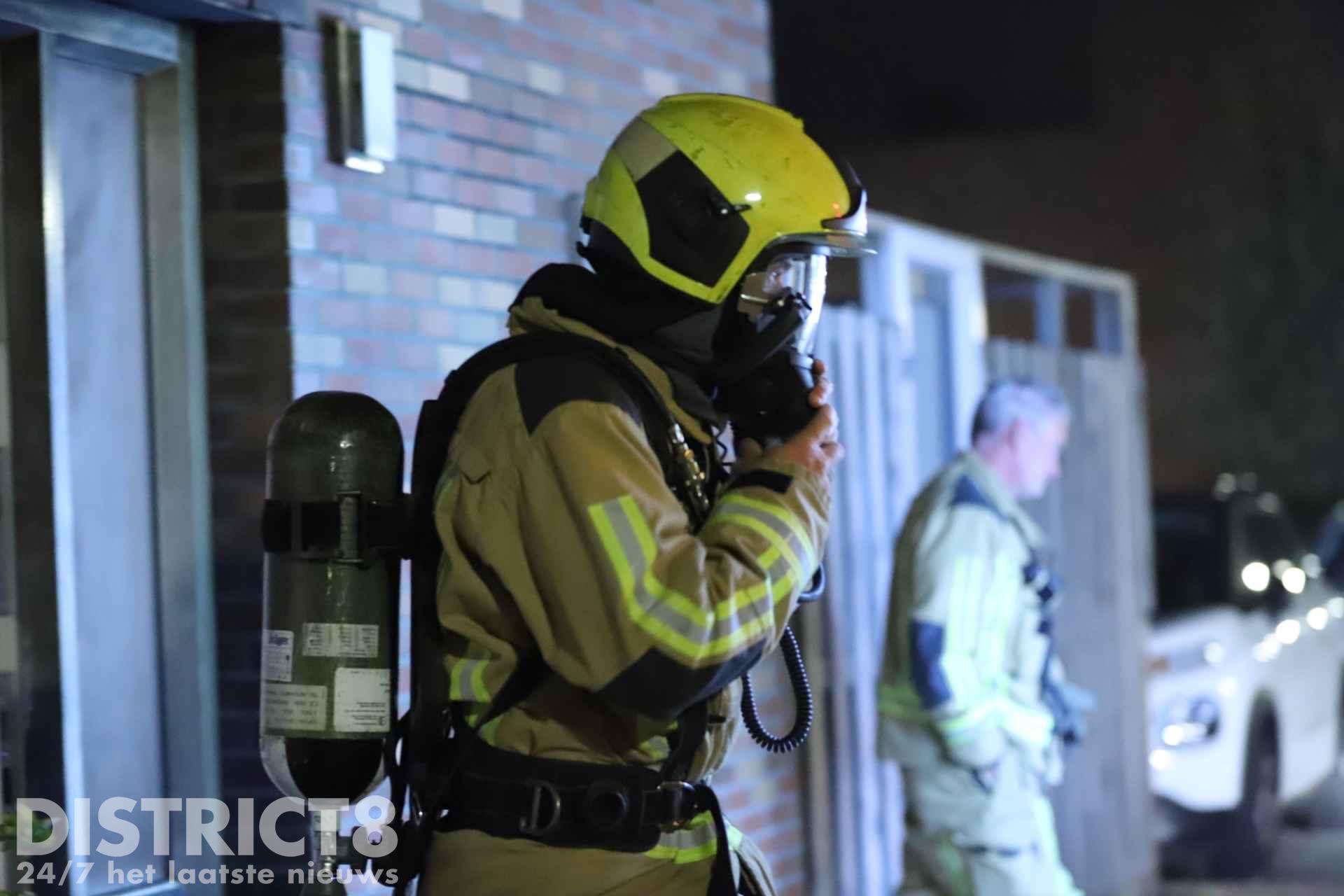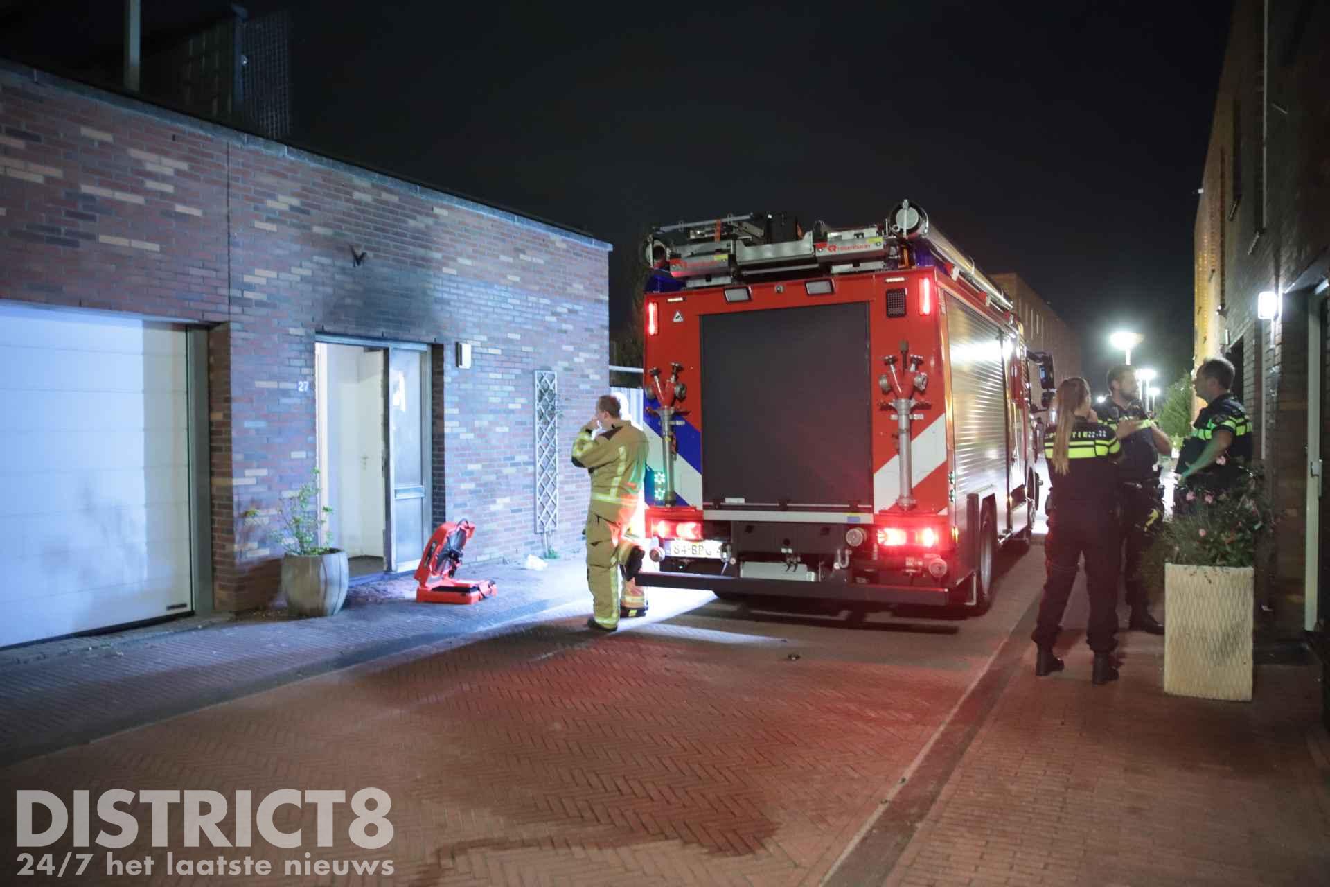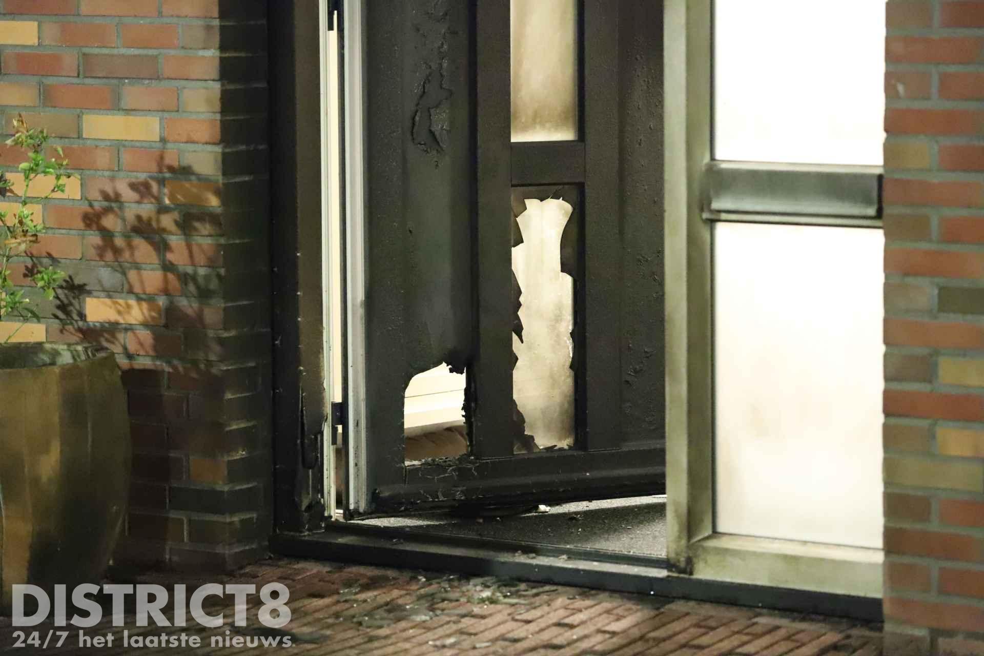 Een buurman ging kijken waar het geluid vandaan kwam en zag dat de voordeur van een woning in lichterlaaie stond. Direct werden de hulpdiensten gealarmeerd en een eerste bluspoging gedaan.