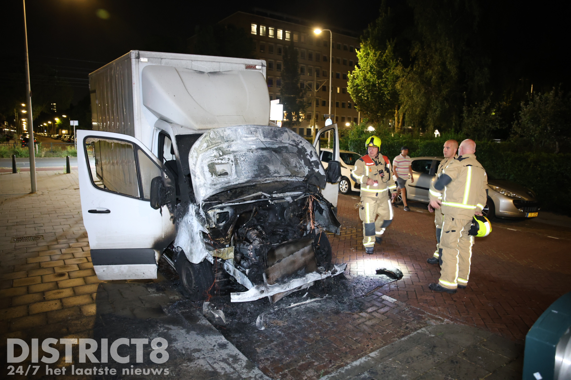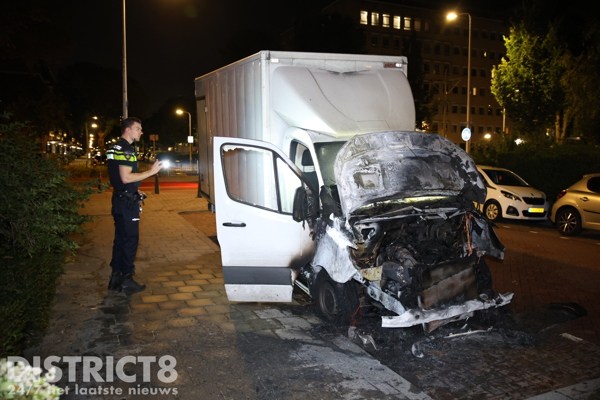 Den Haag – Aan het Hendrinaland in Den Haag heeft in de nacht van maandag 30 juni op dinsdag 1 juli de voorzijde van een geparkeerde bakwagen in brand gestaan. Omstreeks 01:10 werd de brand ontdekt.