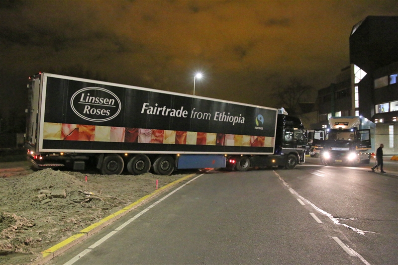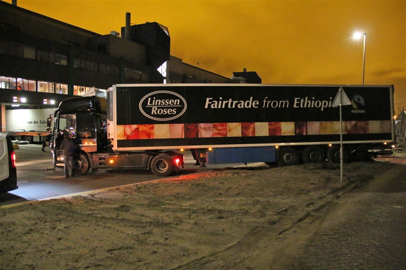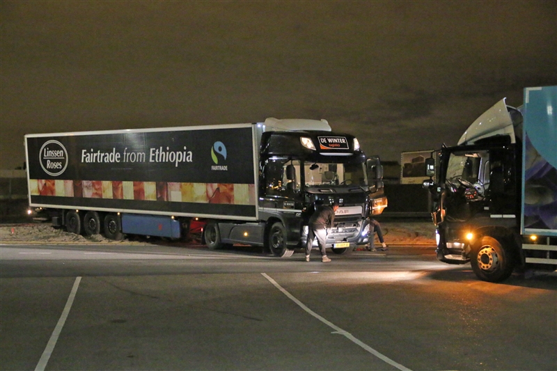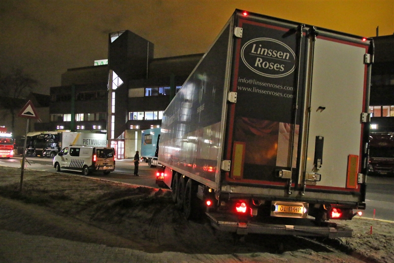 Honselersdijk – Op het terrein van Flora Holland in Honselersdijk heeft een vrachtwagen chauffeur zich in de nacht van maandag op dinsdag in benarde positie gewerkt.