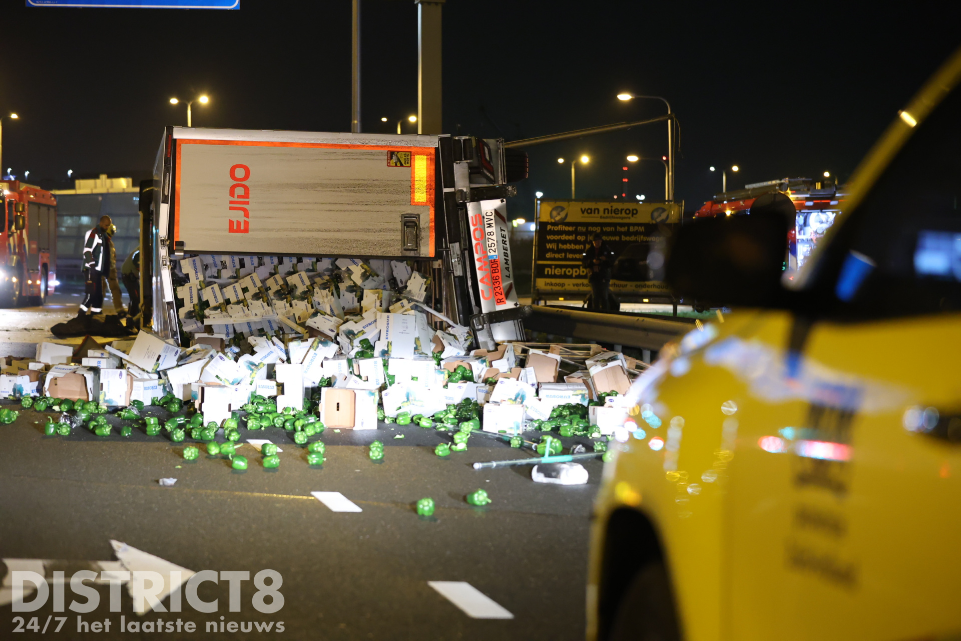De weg werd in beide richtingen afgesloten tussen de Snelbinder en het Westerpleeplein. De weg zal nog lange tijd dicht blijven om de vrachtwagen te kunnen bergen.