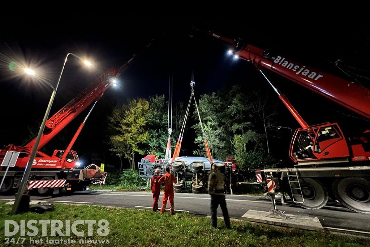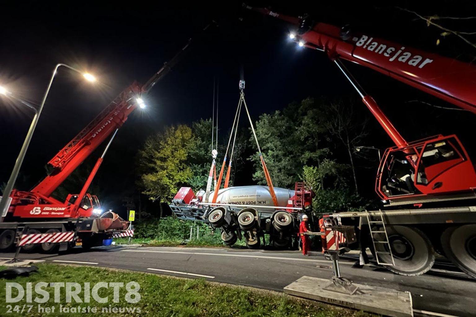 De weg is lange tijd afgesloten geweest in verband met bergingswerkzaamheden.