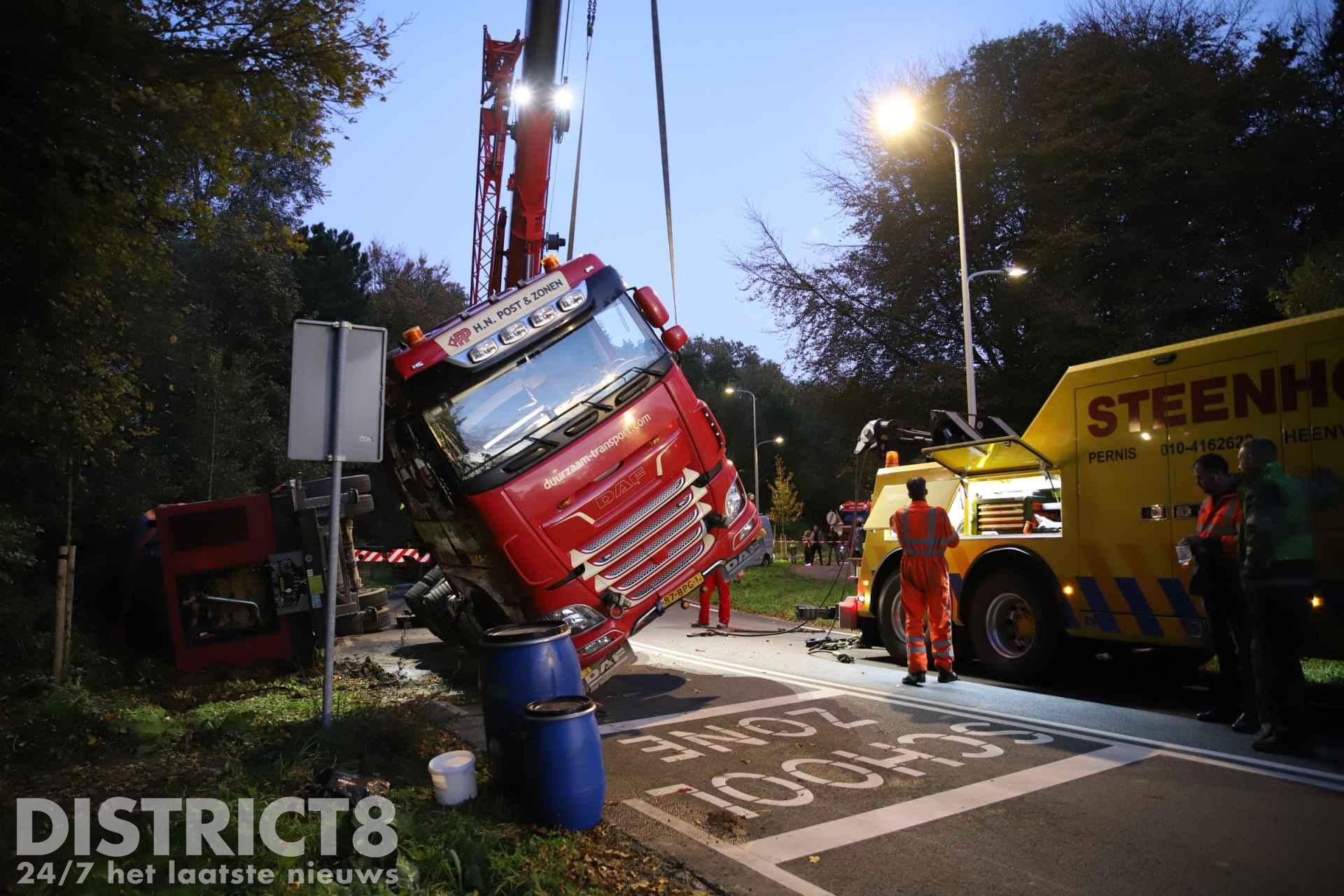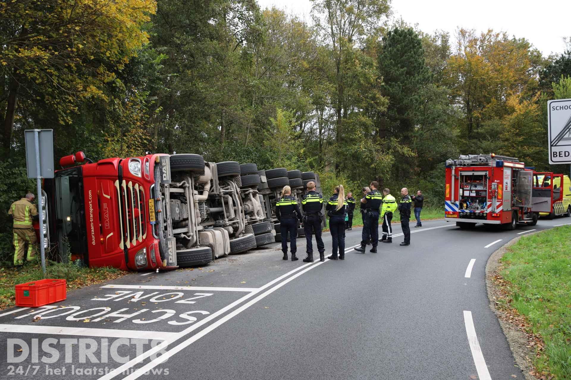 Door het ongeval is de Madesteinweg in beide richtingen afgesloten. FO-Verkeer (het voormalige VOA) is ter plaatse om een onderzoek in te stellen. De vrachtwagen zal worden geborgen door een gespecialiseerd bergingsbedrijf.