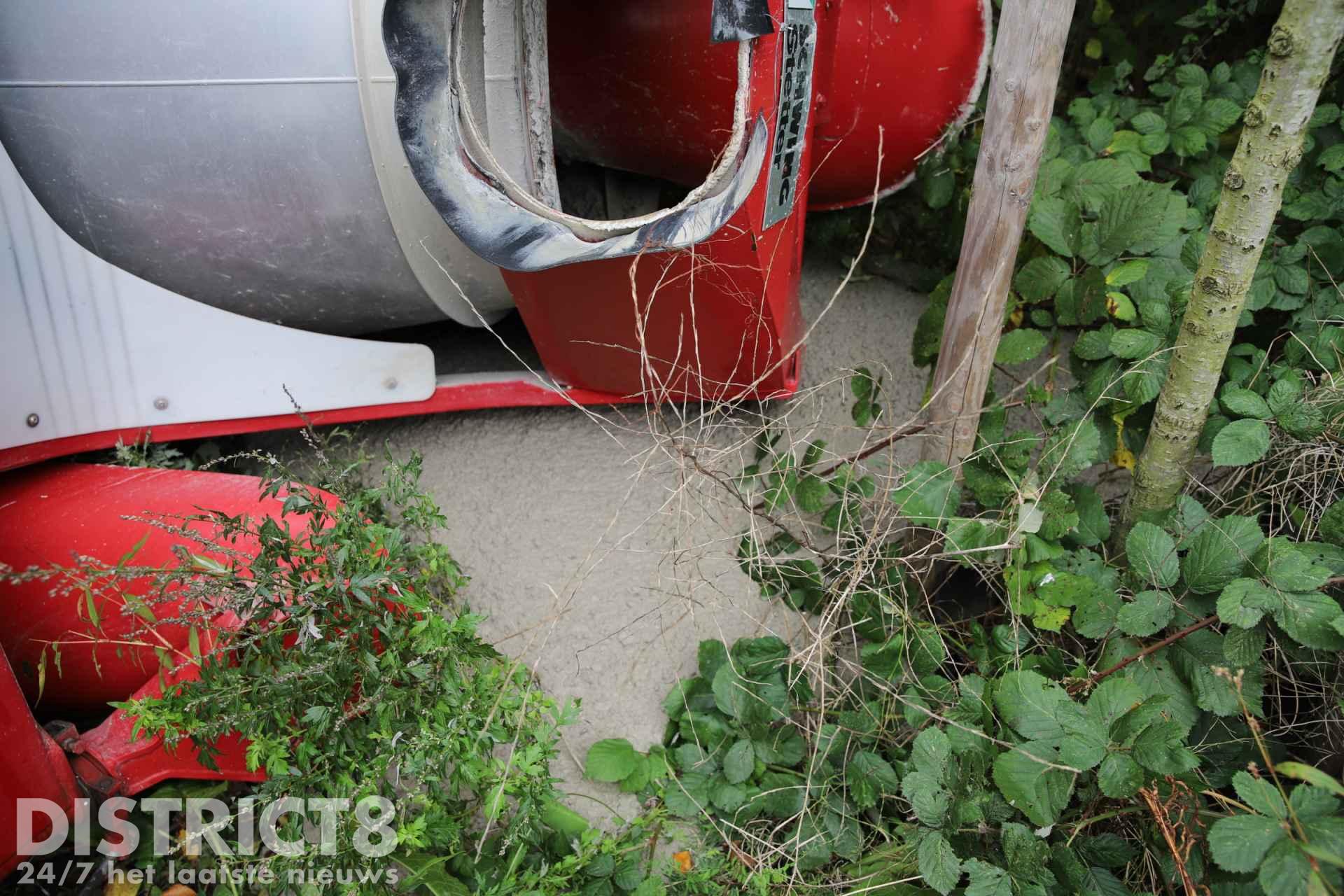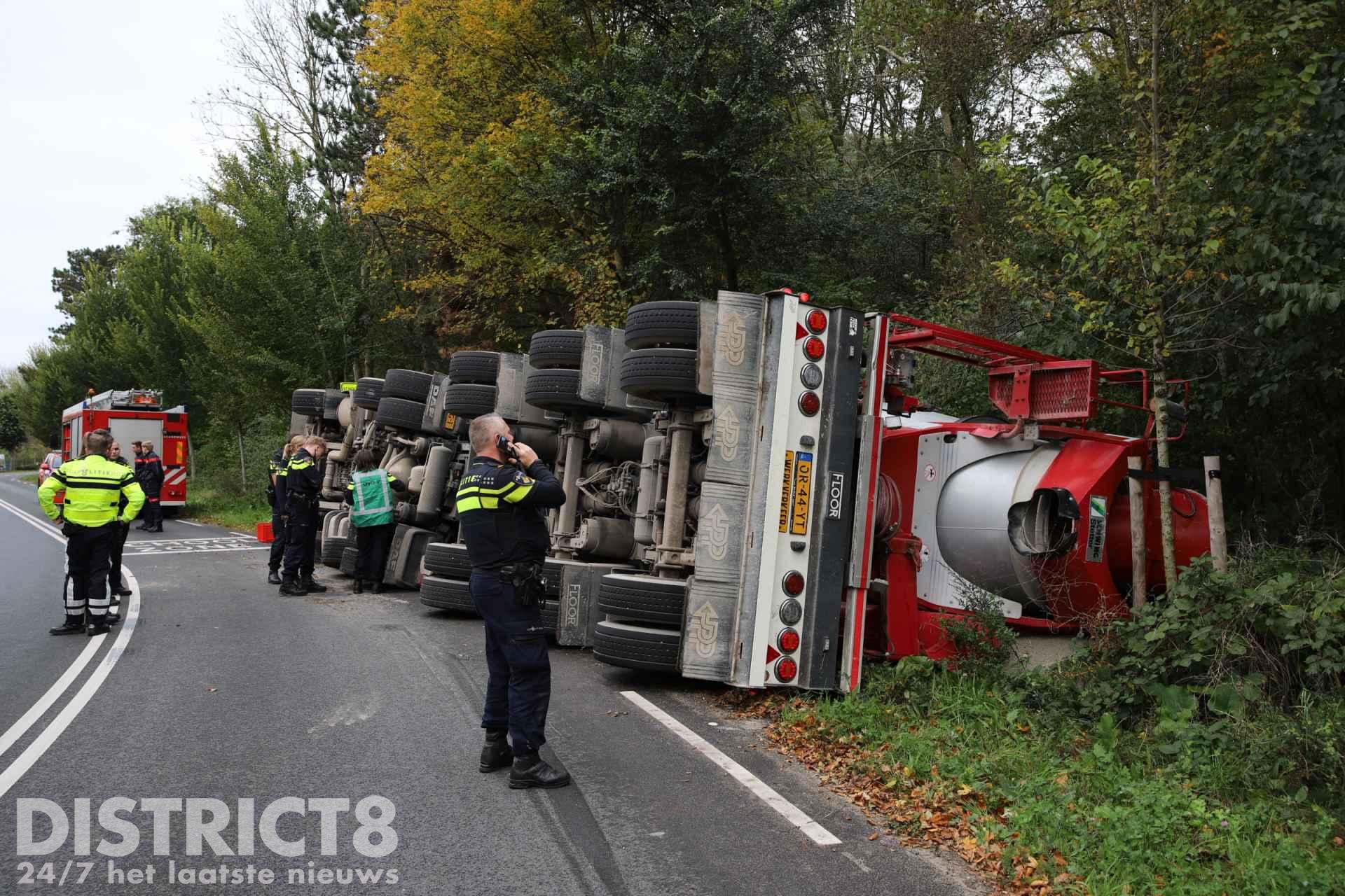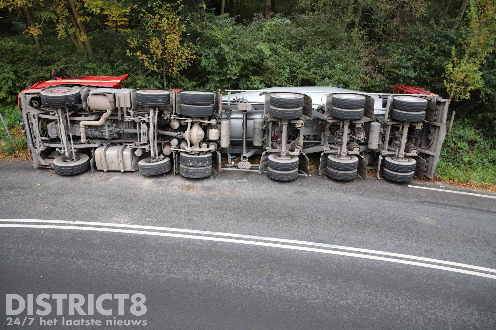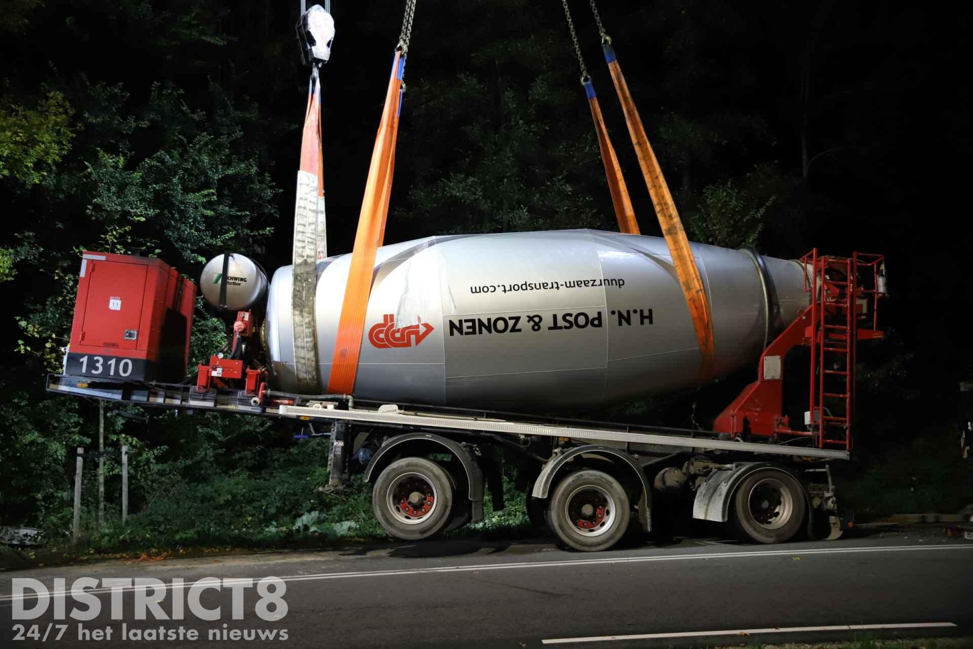 De cementwagen kwam in een flauwe bocht, door een nog onbekende oorzaak op zijn kant terecht. Meteen werden meerdere hulpdiensten ter plaatse gestuurd.