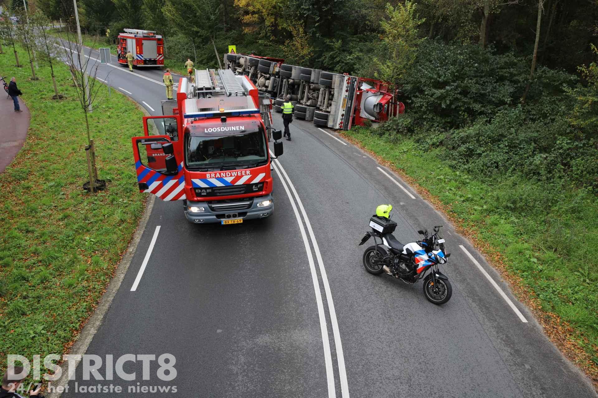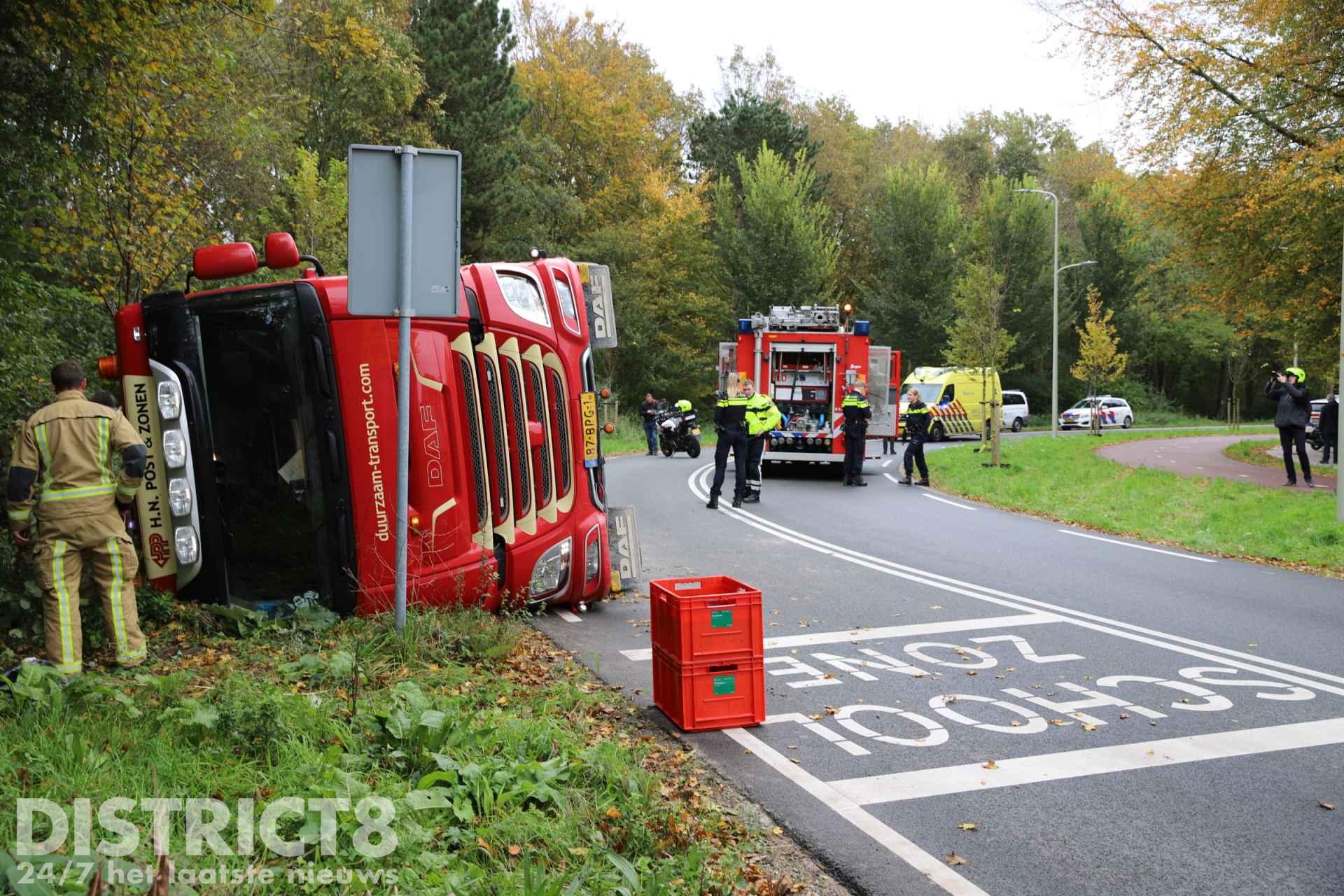 Den Haag – Op de Madesteinweg in Den Haag is maandagochtend 8 november een vrachtwagen op zijn kant terecht gekomen.