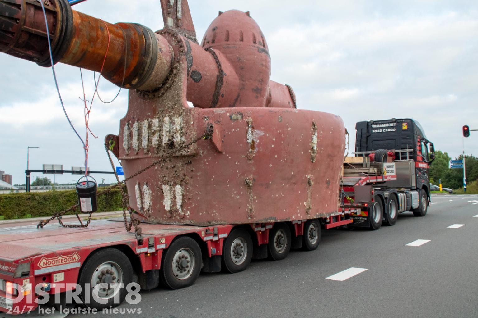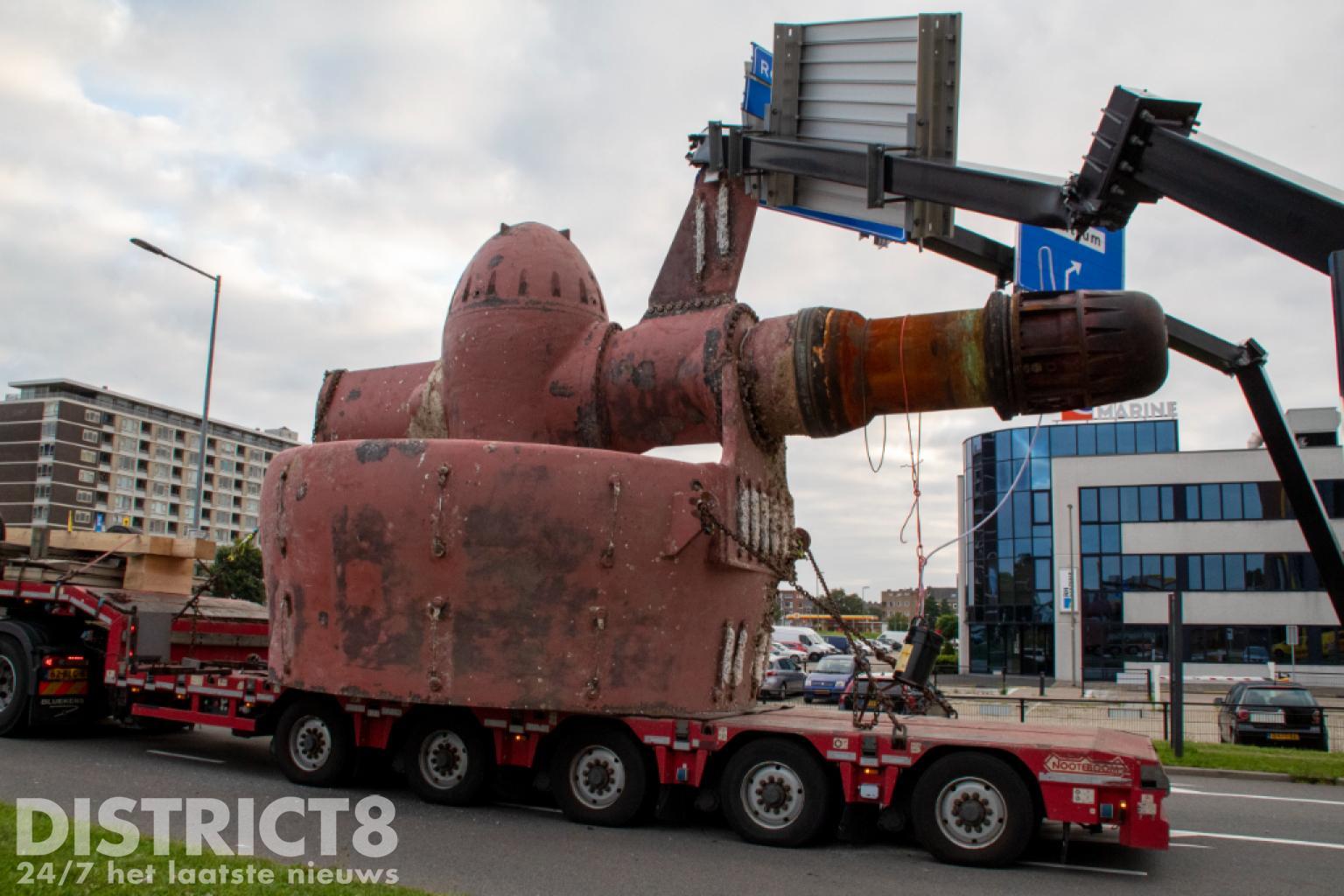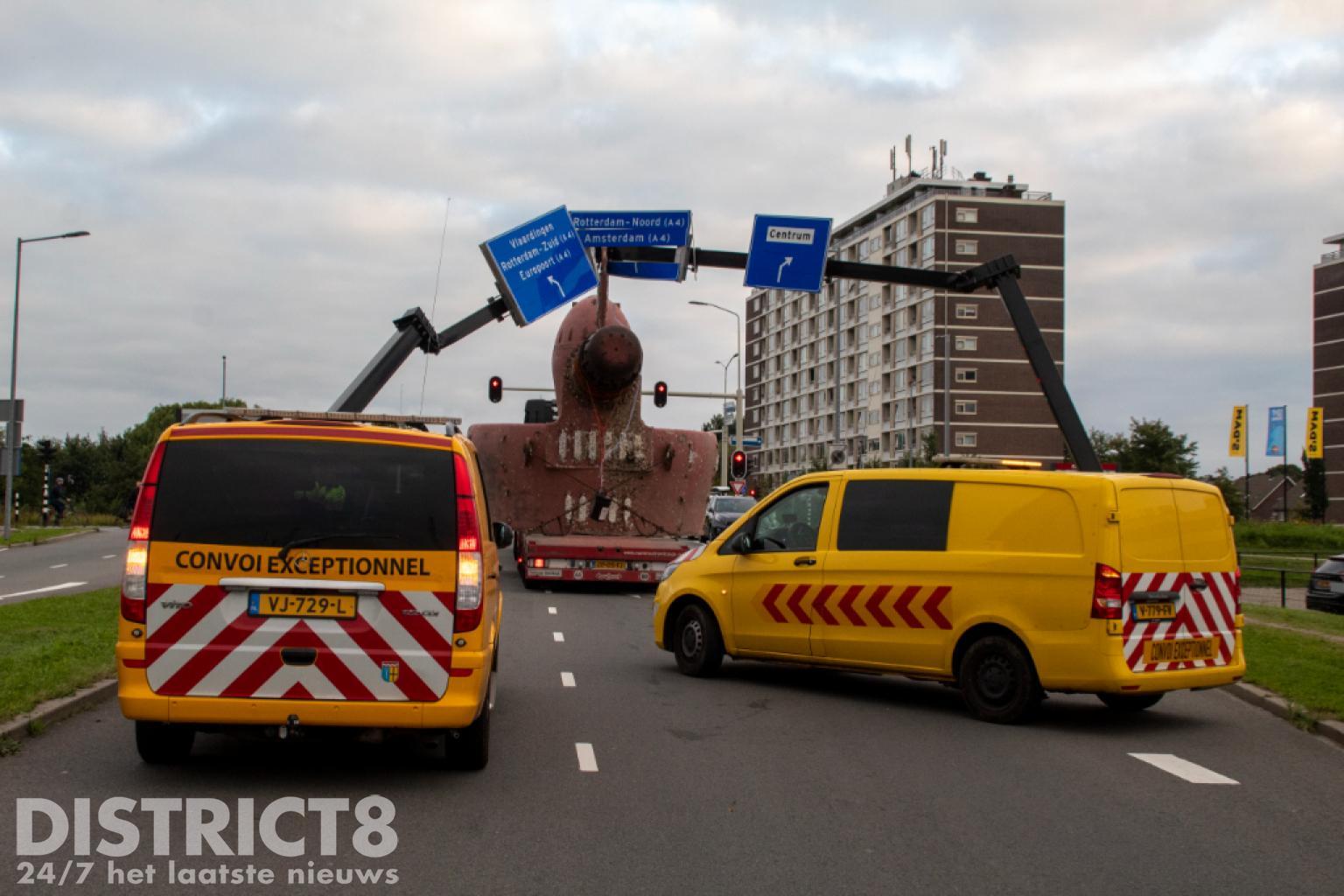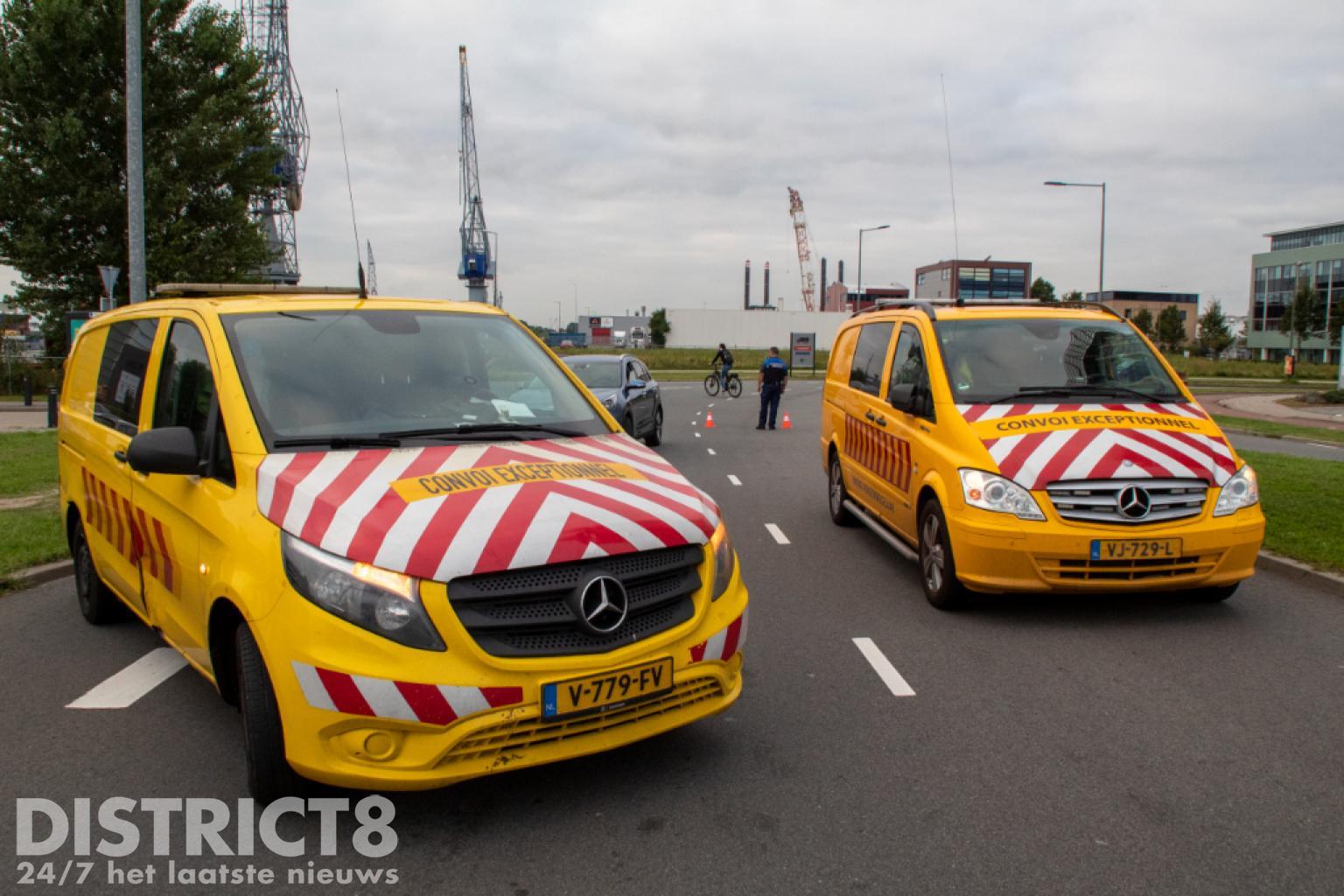 Vlaardingen – Op de Karel Doormanweg heeft een vrachtwagen met oplegger met daarop een flink gevaarte de bewegwijzeringsborden boven de weg geramd.
