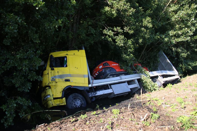 Vrachtwagen raakt van de weg en beland in de sloot A20 Vlaardingen