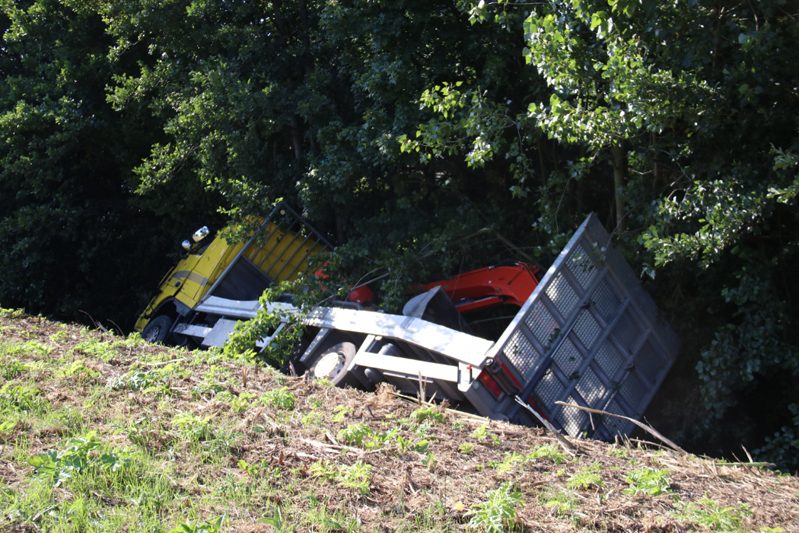 Hulpdiensten, waaronder de brandweer, werden massaal gealarmeerd. De chauffeur van de vrachtwagen kon zelfstandig het voertuig verlaten. De chauffeur is waarschijnlijk met de schrik vrij gekomen.