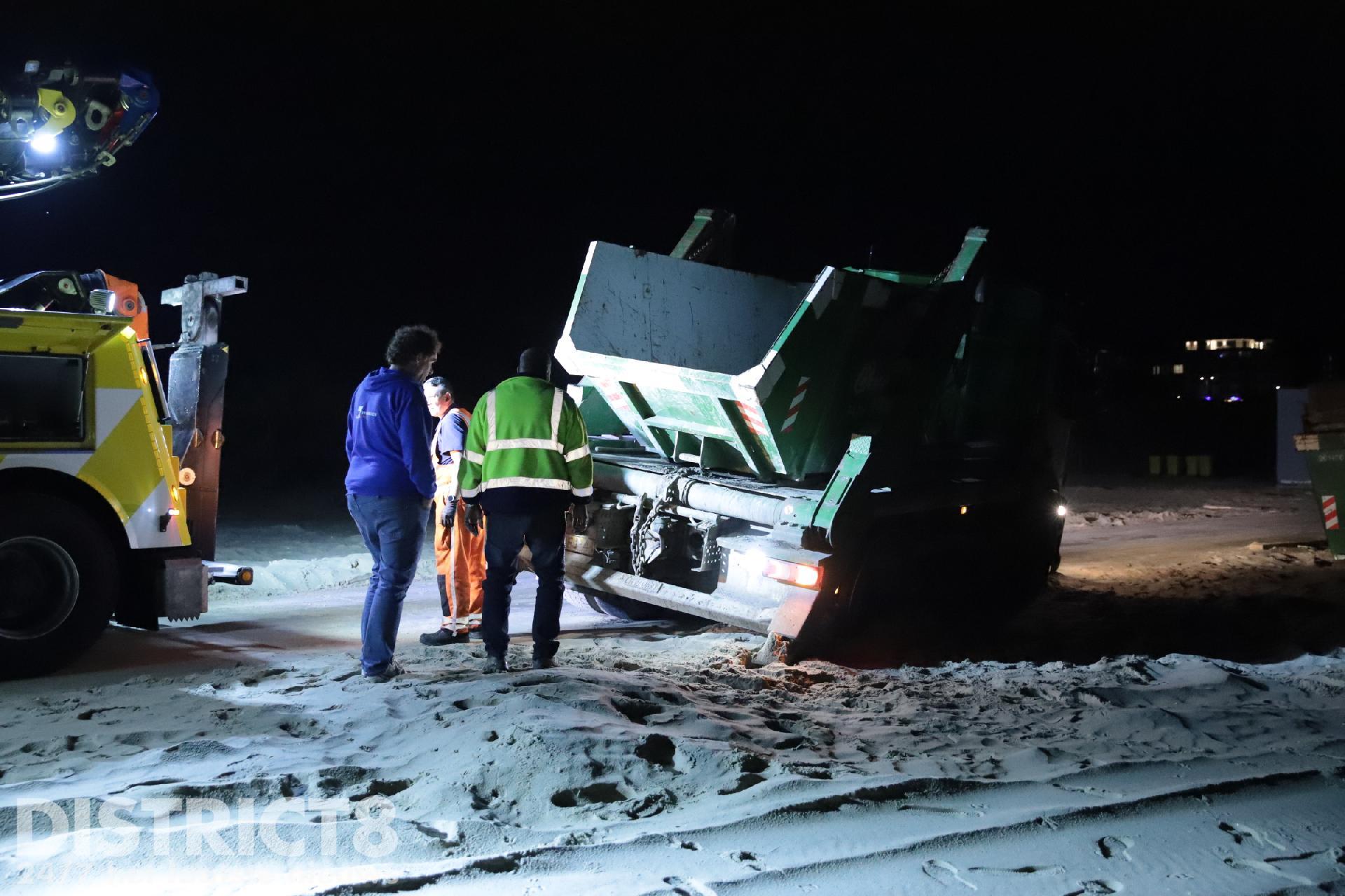Den Haag – Op het Zuiderstrand in Den Haag is donderdagavond 20 oktober een vrachtwagen weggezakt in het zand.