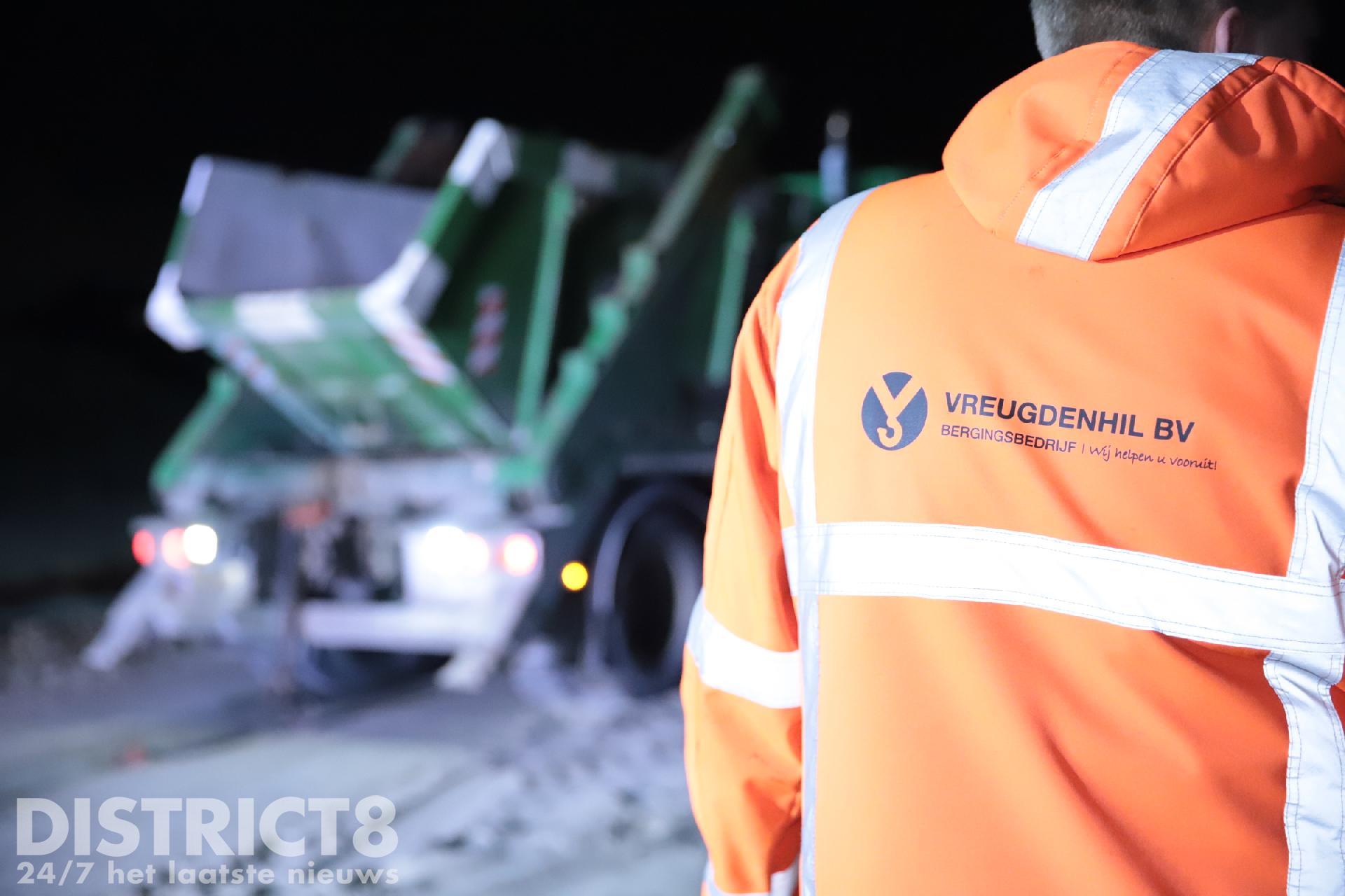 Berger Vreugdenhil kwam ter plaatse met een zware berger. Al snel was de vrachtwagen weer uit het zand getrokken en kon de chauffeur zijn weg weer vervolgen.