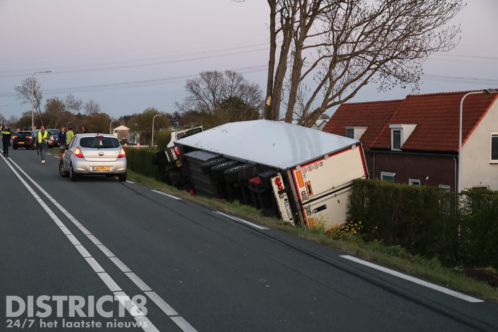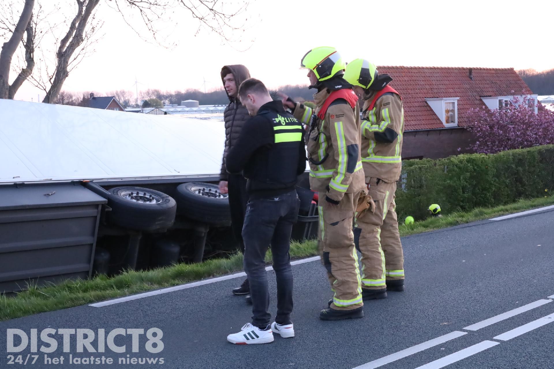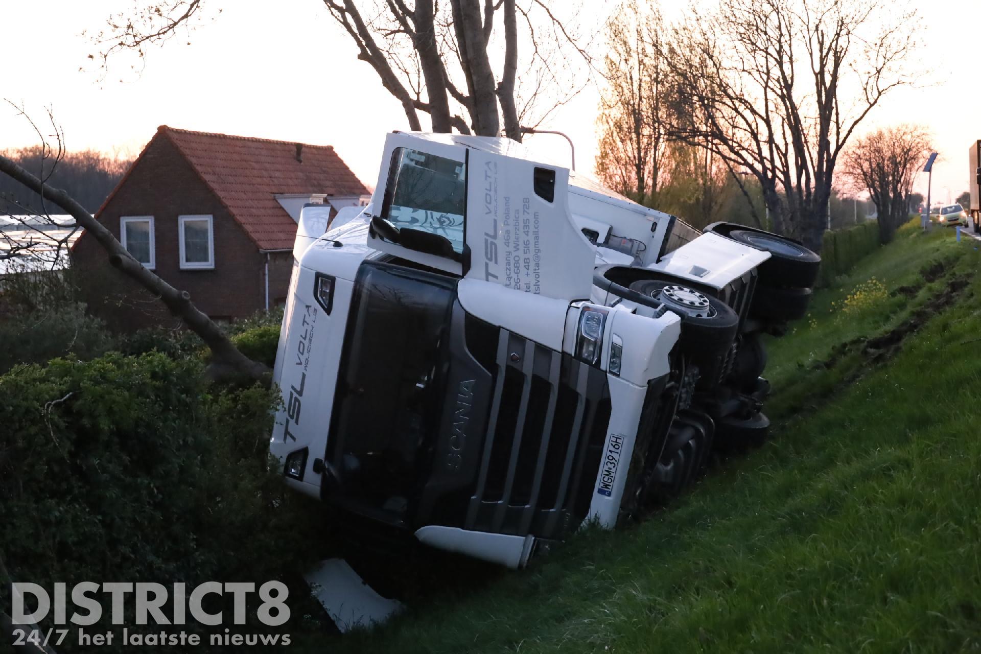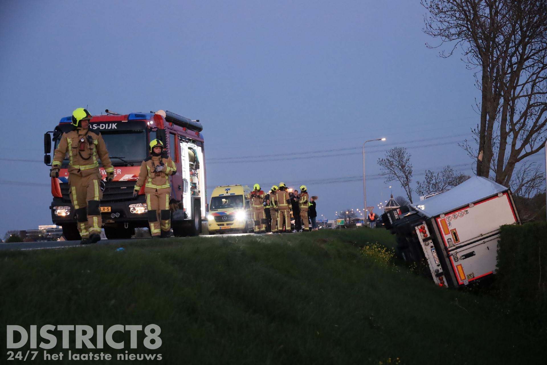 Maasdijk – Op de N220 in Maasdijk is er op woensdagavond 19 april een vrachtwagen van de weg geraakt na een eenzijdig ongeval.