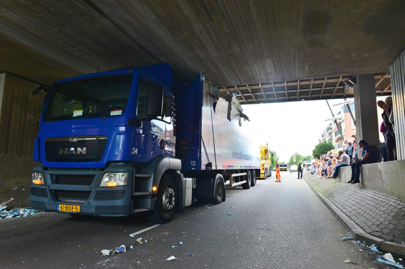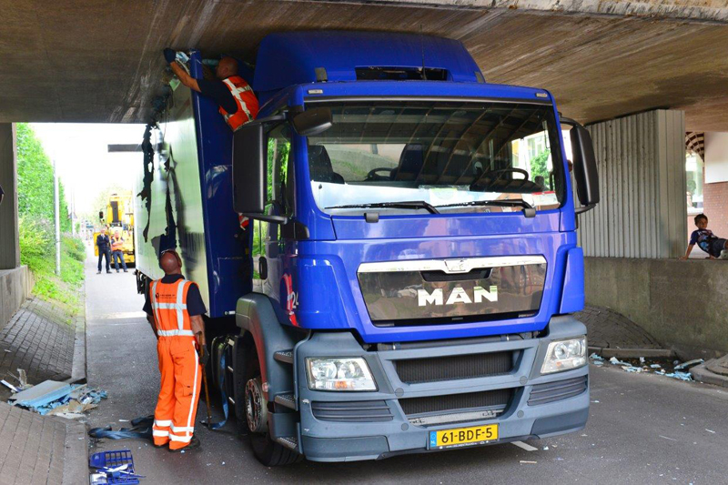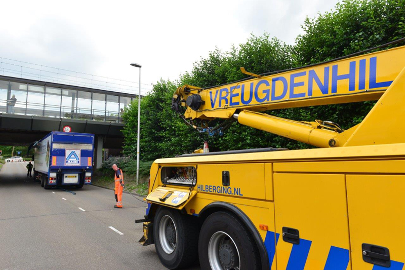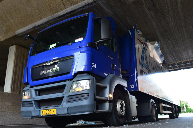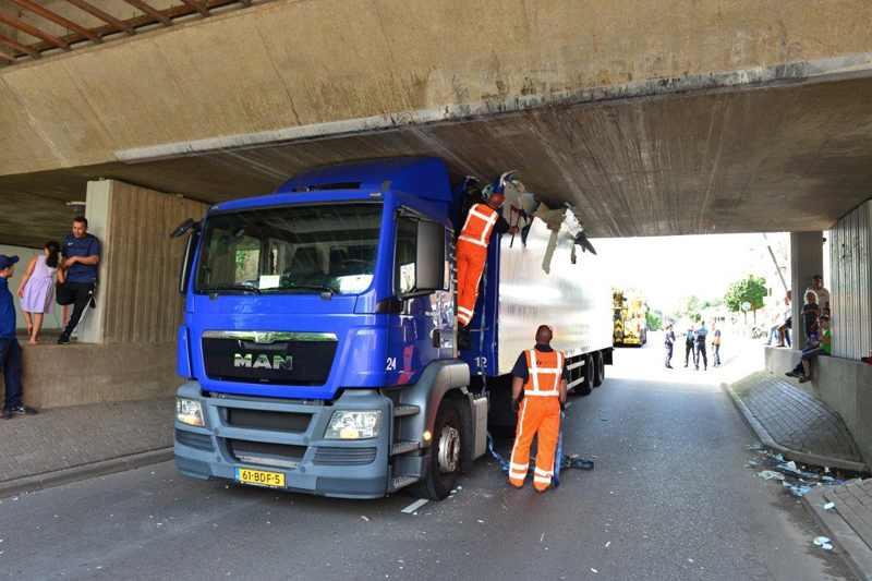 Home Haaglanden Vrachtwagenchauffeur rijdt zich klem onder viaduct Parkdreef Zoetermeer
