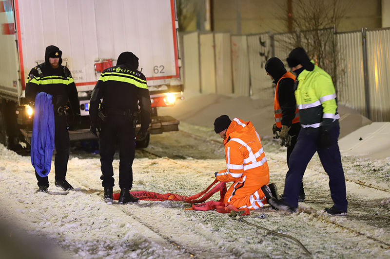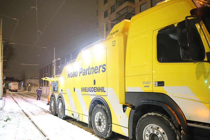 Een berger van Vreugdenhil is ter plaatse om te bekijken hoe deze klus opgelost moet gaan worden.