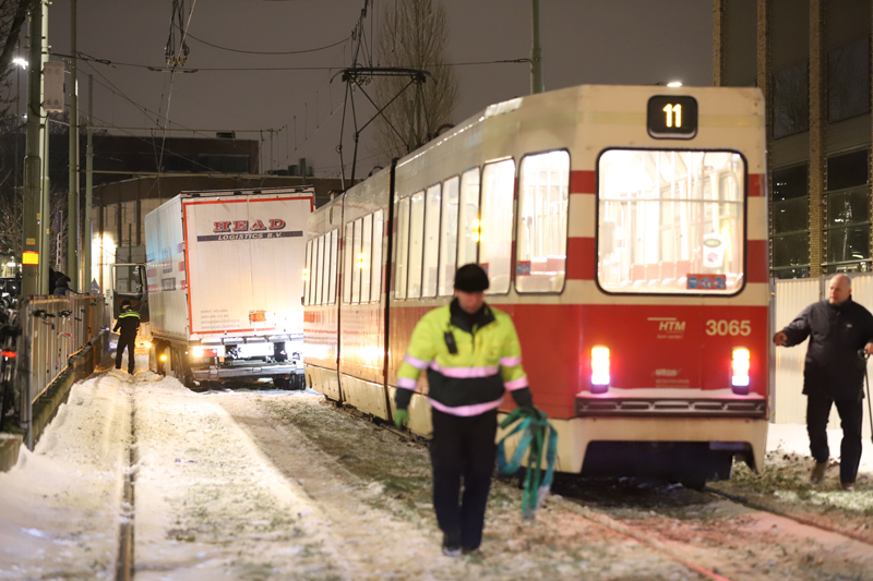 De HTM die al flink last had van de sneeuw kreeg er een probleem bij. Lijn 11 staat in beide richtingen gestremd.