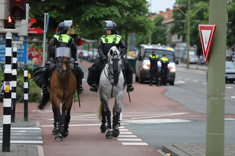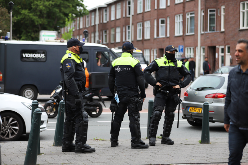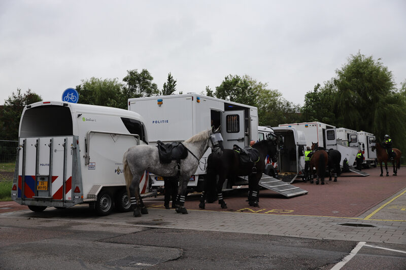 Den Haag – Op o.a de Hoefkade en het Jonckbloetplein in Den Haag is de politie zichtbaar aanwezig en houdt de situatie nauwlettend in de gaten, bij ongeregeldheden zal de politie gaan ingrijpen.
