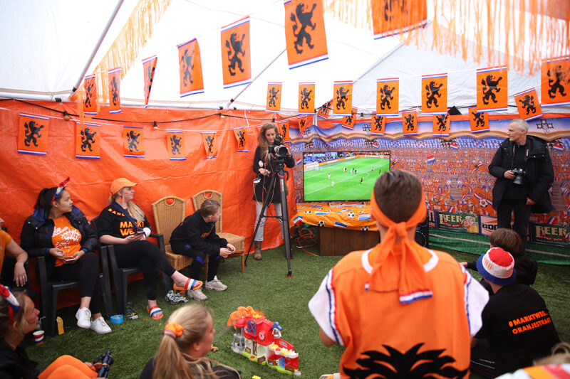 Den Haag – Op de Marktweg in Den Haag is het weer gezellig druk. Veel bewoners kijken daar naar de wedstrijd Noord-Macedonië tegen Nederland.