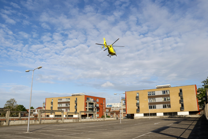 Naast de politie, de brandweer met de hoogwerker en een ambulance kwam ook de traumahelikopter ter plaatse. De piloot zette de helikopter neer op het lege parkeerdek van de parkeergarage aan het Liesveld.