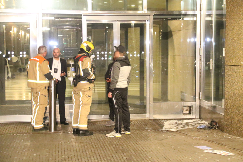 Ter plaatse troffen de hulpdiensten een brandje aan bij de buitenkant van de Tweede Kamer. In de nabije omgeving hield de politie een vrouw aan, zij is met een arrestantenbus vervoerd naar het politiebureau.