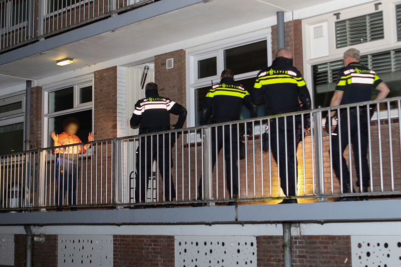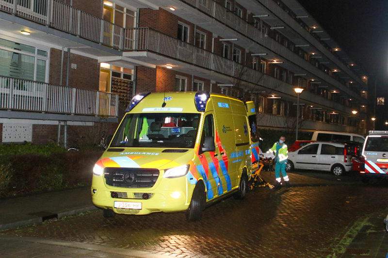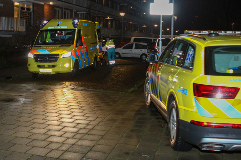 Het slachtoffer was nog via de galerij van de flat naar de straat gelopen alwaar de hulpdiensten hem / haar aantroffen.