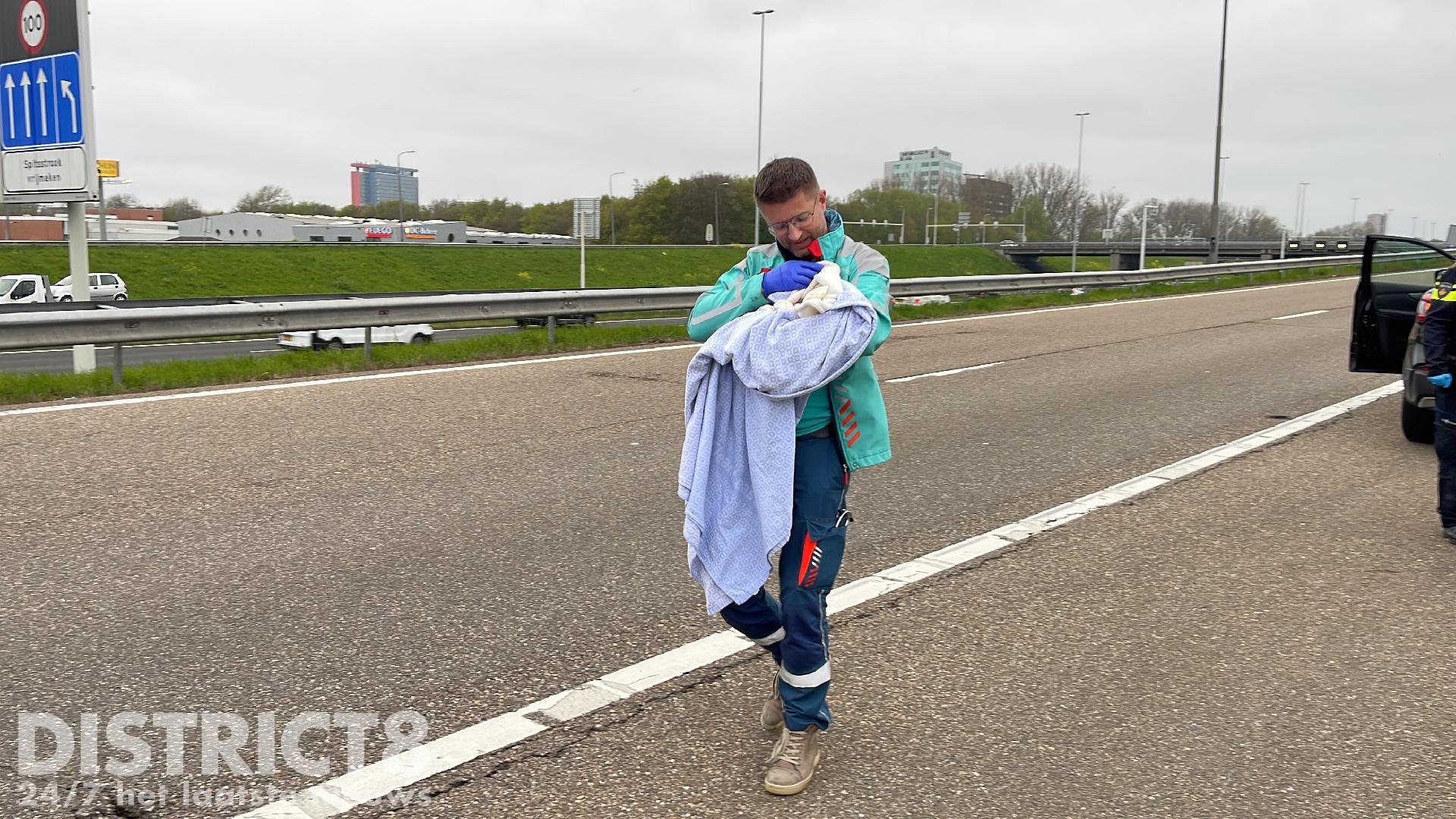 Delft – Een vrouw is zondagmiddag 16 april 2023 bevallen van een dochtertje op de afrit van de snelweg A13 in Delft.