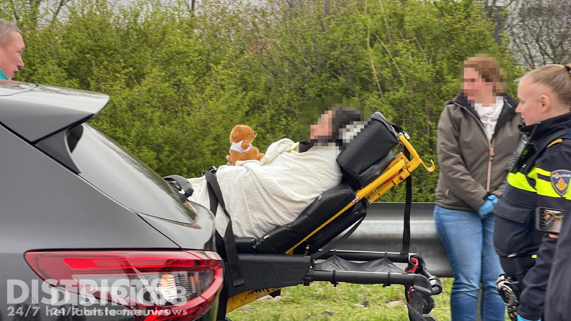 Hierna zijn moeder en kind met spoed overgebracht naar het ziekenhuis. Vader en verloskundige zijn achter de ambulance aangereden.