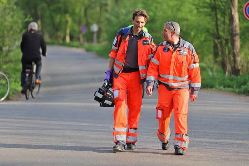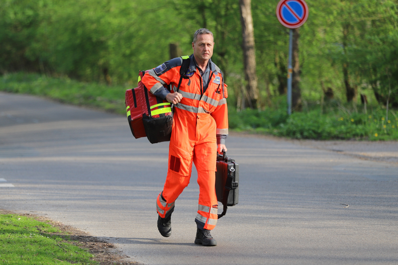 Omdat de traumahelikopter via de lucht natuurlijk sneller was dan de ambulance verleende de trauma-arts eerste hulp. Nadat het ambulancepersoneel ter plaatse kwam werd de zorg snel overgedragen.