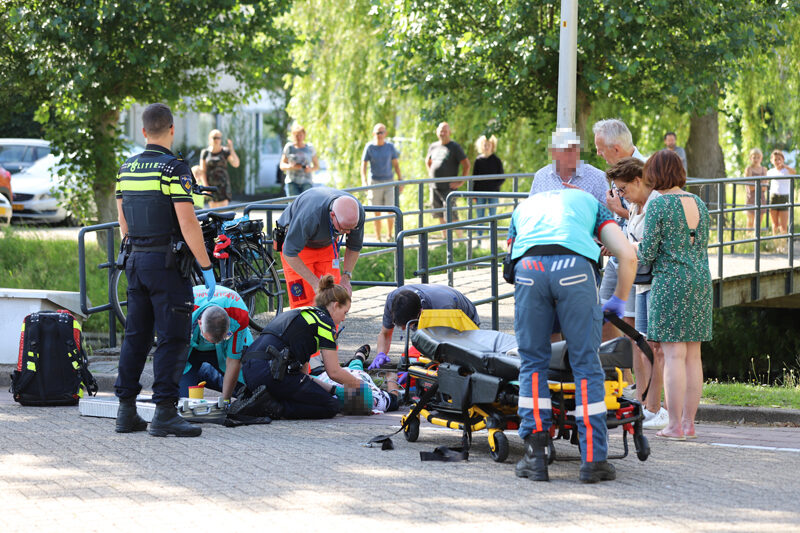 De vrouw kwam met haar fiets van een bruggetje af en kwam hard ten val. Tijdens haar val belandde ze met haar hoofd op de stoeprand. De vrouw liep door de val flink letsel op.